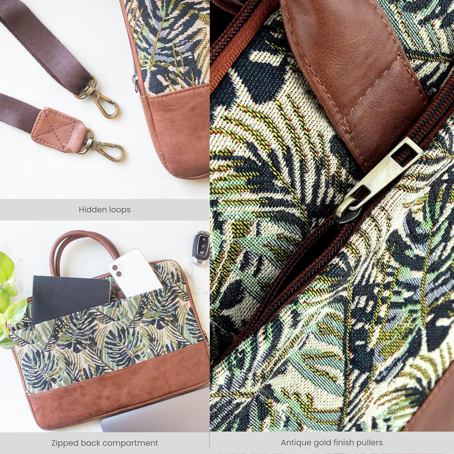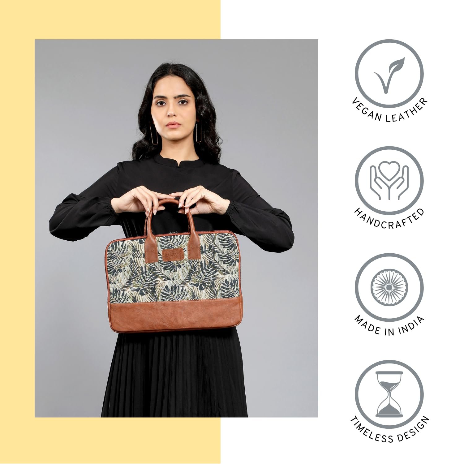 Material: Made with quality tweed and vegan leather, this stylish bag has a soft lining and detachable strap. Fits laptops up to 14 inches. Great as an office bag for man, office laptop bag for man, and also suits office handbags for women laptop and office handbags for women.