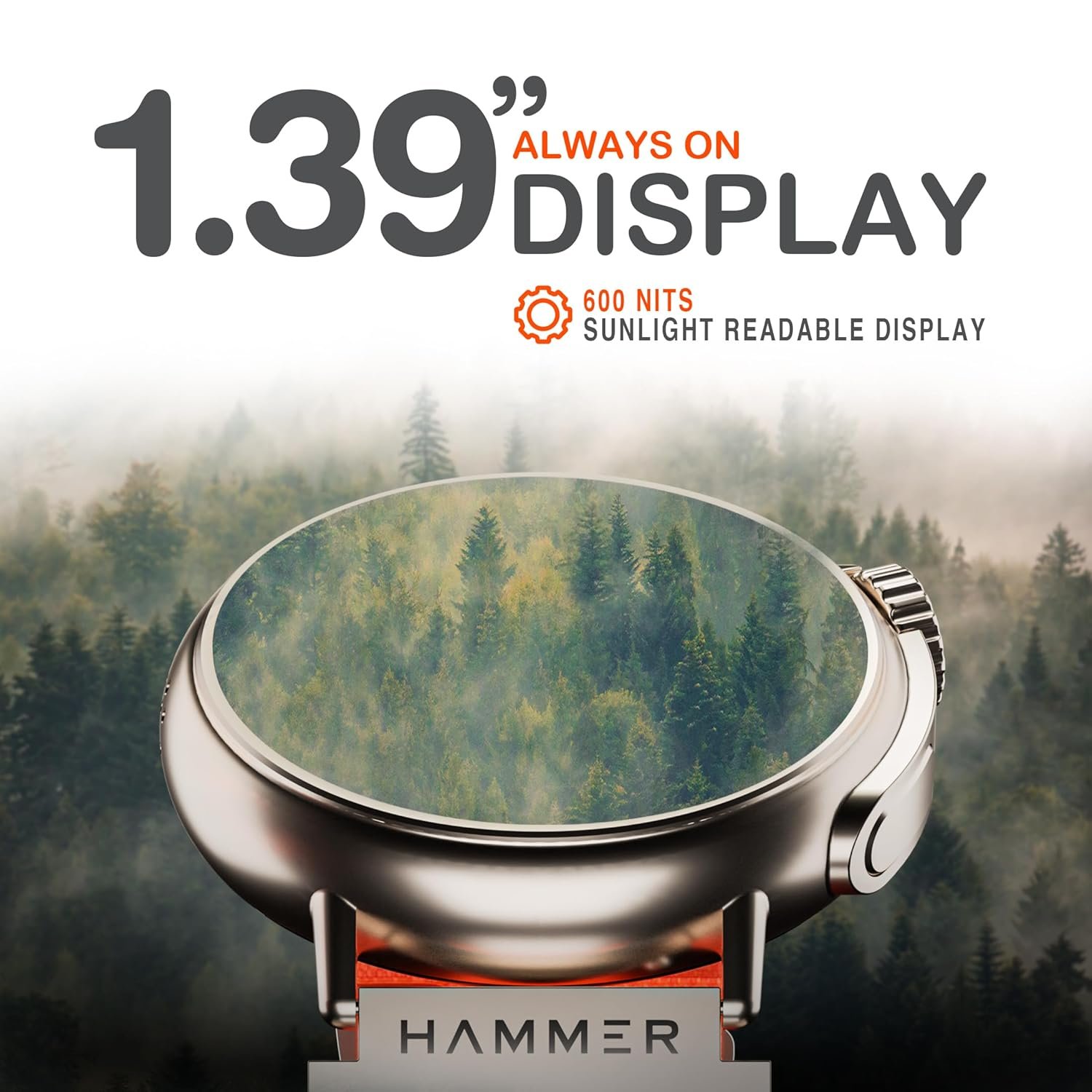 HAMMER Active 3.0 1.39″ Round Dial Smart Watch for Men, Always On Display, Metallic Body, Bluetooth Calling, Notifications (Pop Orange)
