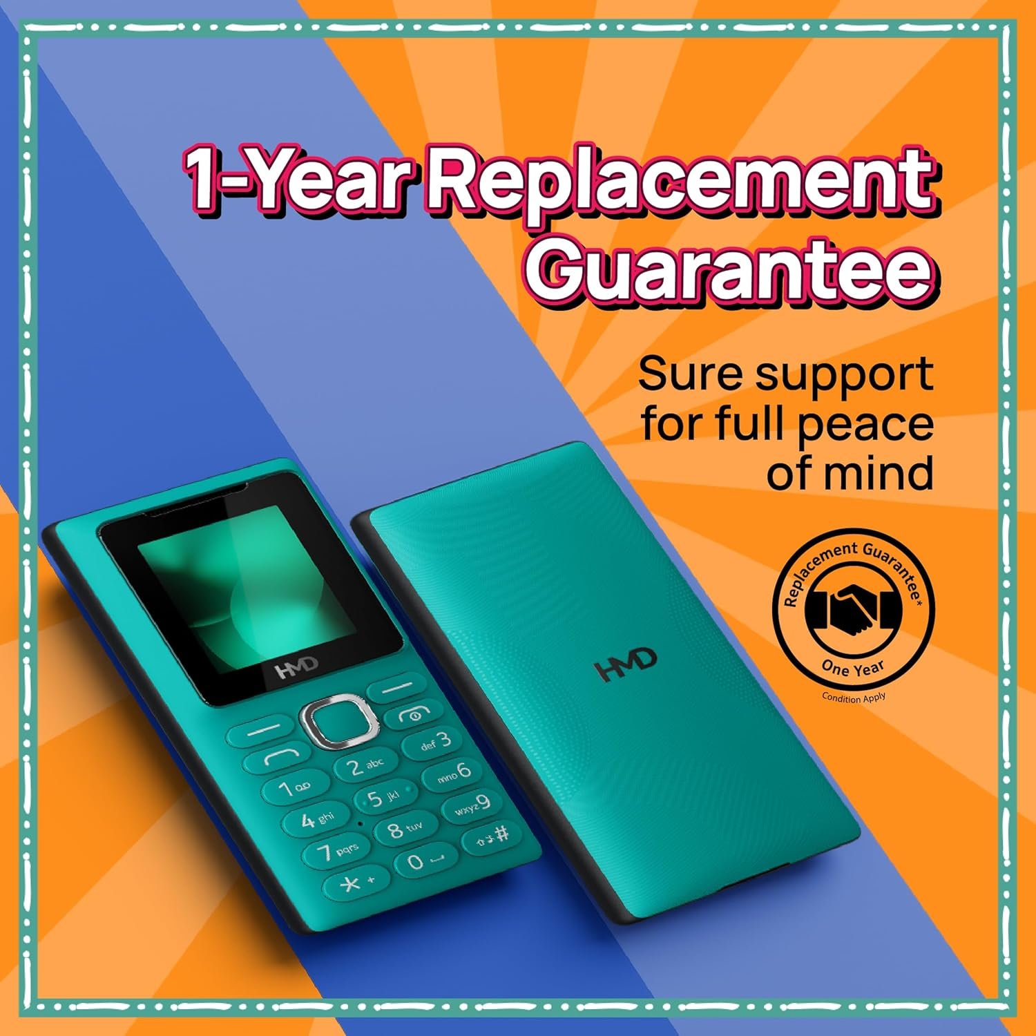 HMD 101 dual SIM keypad phone keeps you connected and entertained with long battery life, MP3 player, wireless FM radio, Snake game, torch, and a clear 1.77‑inch display — durable, stylish, and easy to use every day. MicroSD card support to carry thousands of songs. And built-in phone talker and time talker, the phone that talks to you.