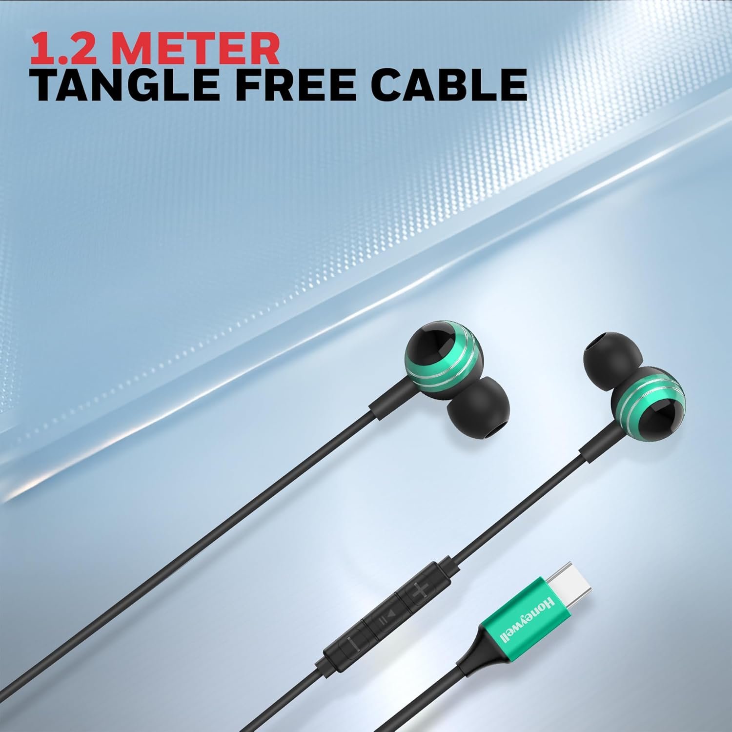 Honeywell Suono P70 Wired in Ear Earphones with Built in Mic 10mm*2 Drivers, Noise Cancelling and Ultra HD Mic, IPX4, Voice Assistant Enabled, HD Sound & Clear Audio, Type C Compatible, 1.2 Mtr