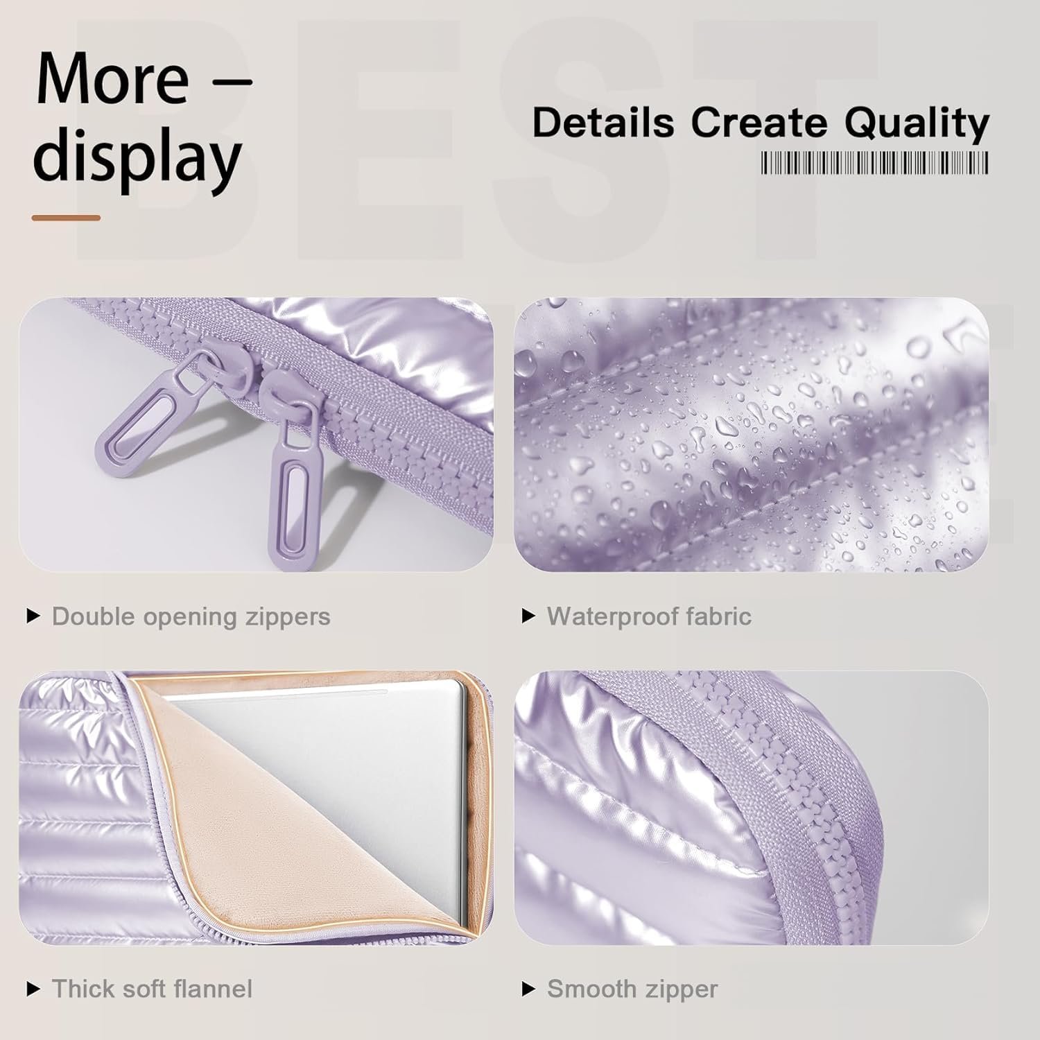 Carry your laptop in comfort and style with the House of Quirk Laptop Sleeve Bag 13-14 Inch, crafted from premium down fabric for a soft, luxurious feel and long-lasting durability. This lightweight yet sturdy sleeve offers superior protection against scratches, dust, and minor impacts, while its waterproof exterior guards your device from accidental spills and light rain. Designed with a slim, modern look, it easily fits inside backpacks, tote bags, or can be carried solo — perfect for women and girls on the go for office, school, or travel.
