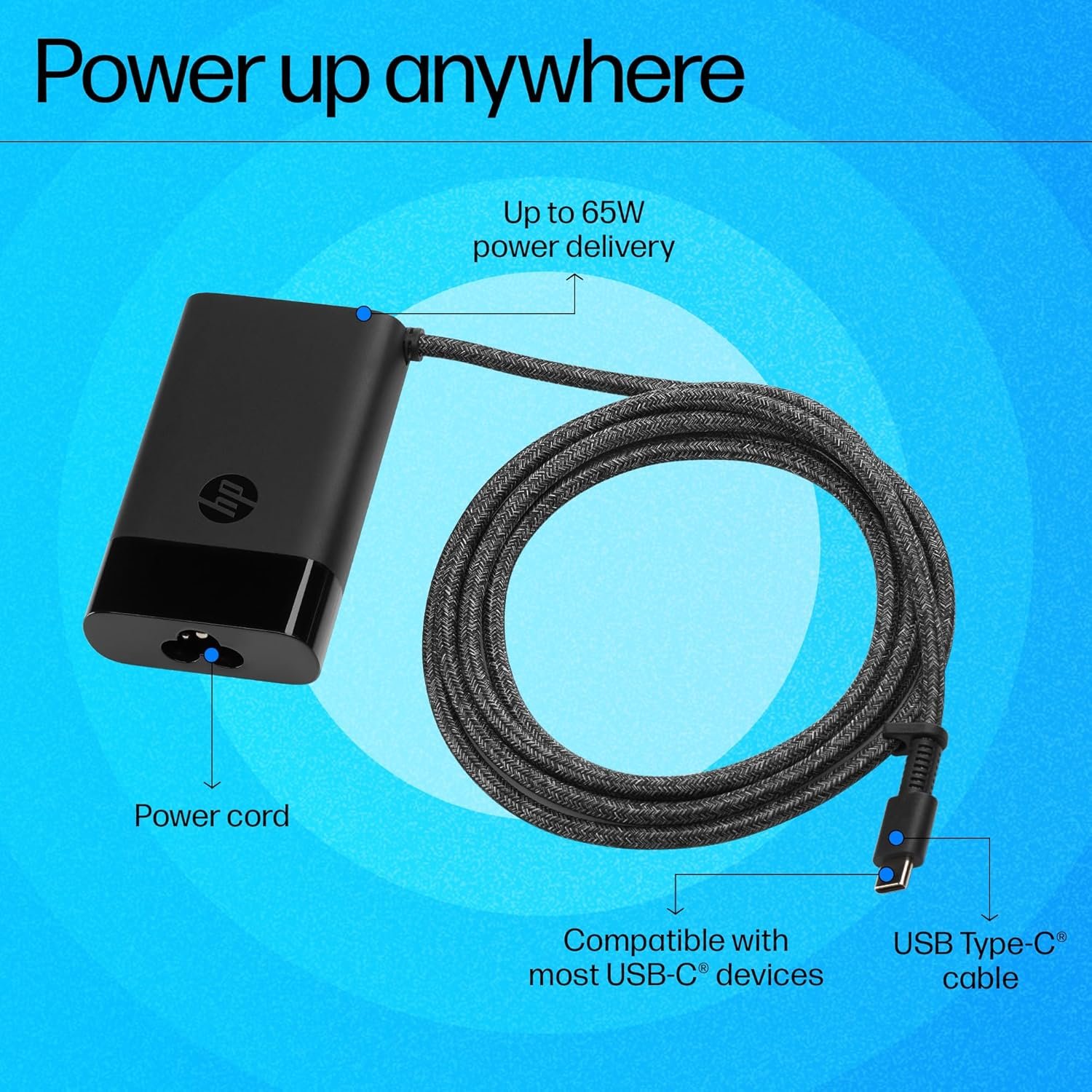 HP USB-C 65W Laptop Charger, 65W, Type-C USB, AC Adapter (671R2AA)