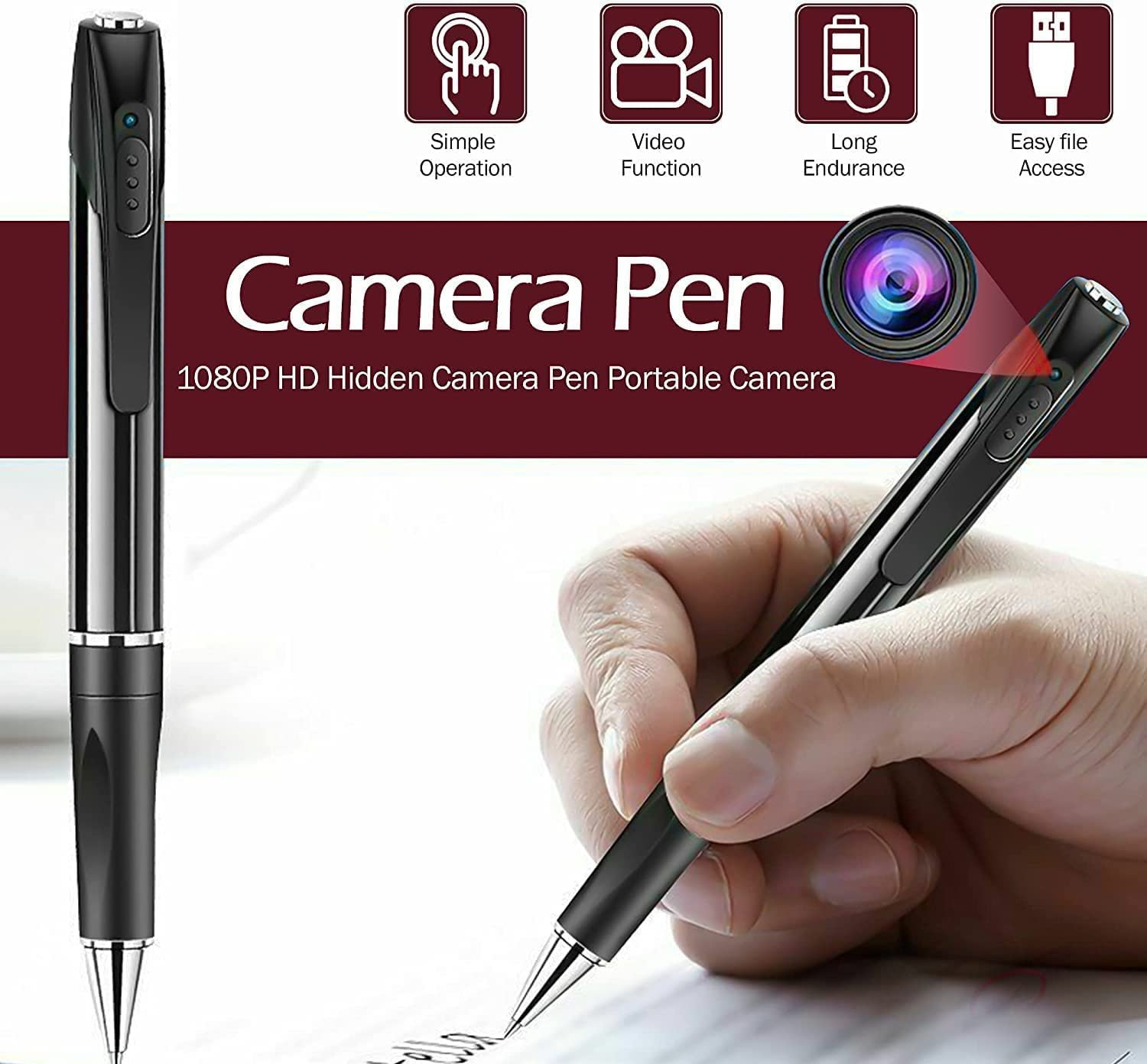 Capture Real-Time Video and Photos with the Premium Body Camera Pen The Body Pen Camera is your perfect tool for capturing HD-quality video and photos in real-time, ideal for business, school, or personal use. This premium product also makes an excellent gift. Key Features: 2-in-1 Body Camera and Pen: Record HD 1080P videos and pictures. AI Motion Detection & Loop Recording: Automatically detects motion and records, with 70 minutes of continuous recording. 90° Angle Recording: Wide-angle coverage for comprehensive capture. Compatibility: Works with PC and Mac; supports micro SD cards up to 128 GB (Class 10, not included). Writable Pen: Functional pen with included accessories (charging cable, SD card reader, ink cartridges, cleaning cloth, pin). Simple One-Click Operation: Easily start or stop recording with a thumb press. Versatile Use: Ideal for recording lectures, business meetings, and enhancing personal safety during travels. Stay ahead and capture every moment with the premium Body Pen Camera.