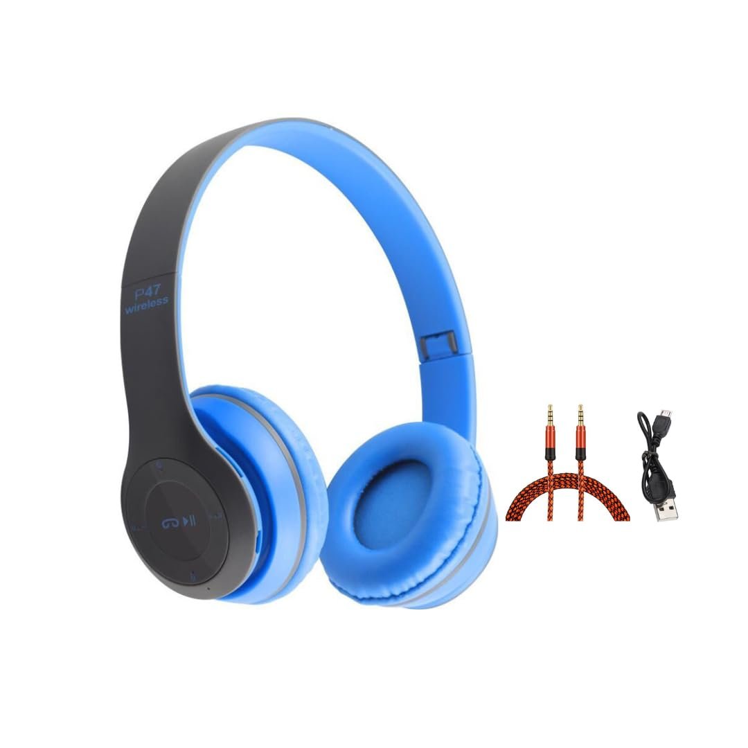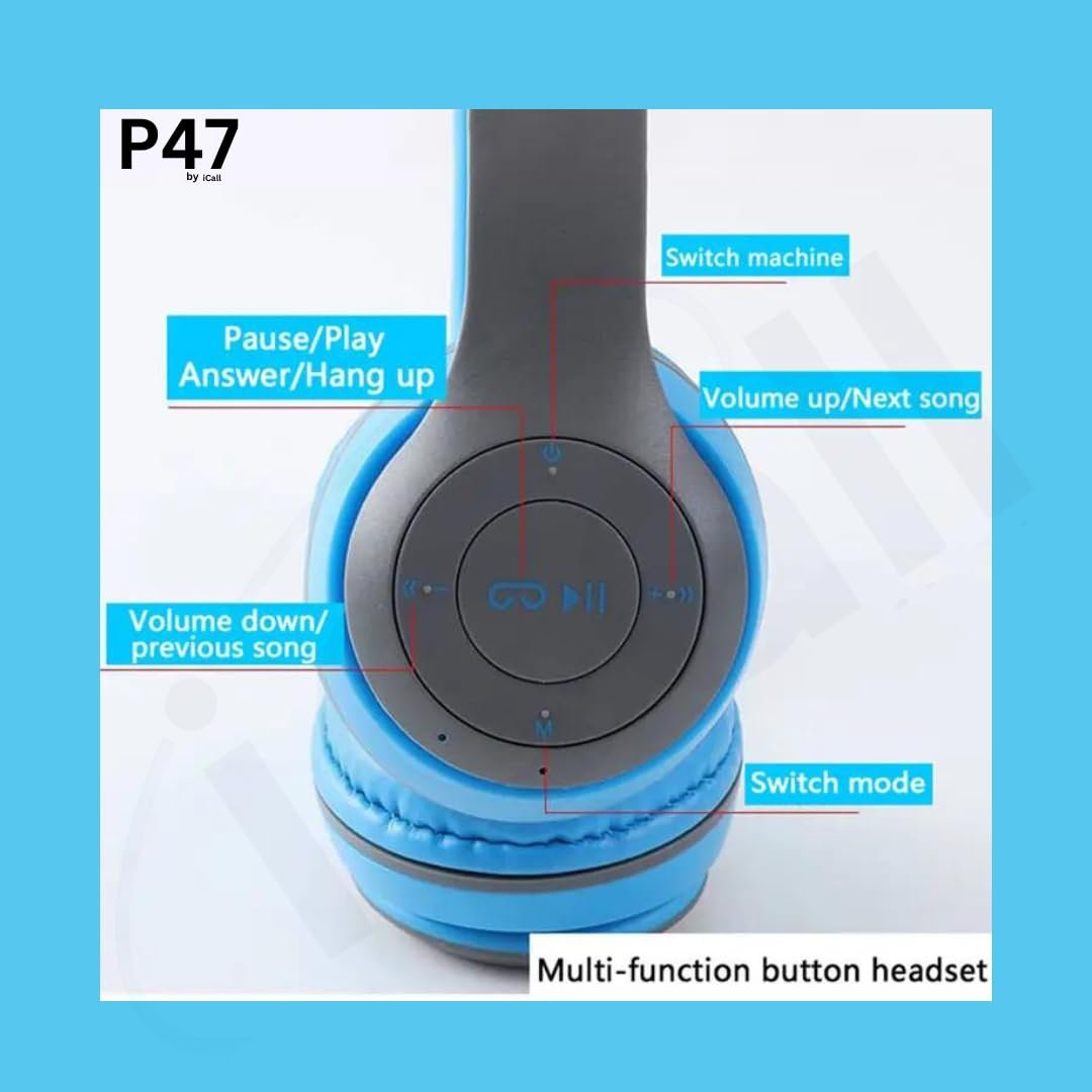 icall P47 Gaming Over Ear Bluetooth Headphones Wireless with Mic (Blue, True Wireless)