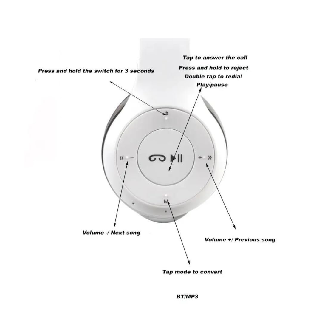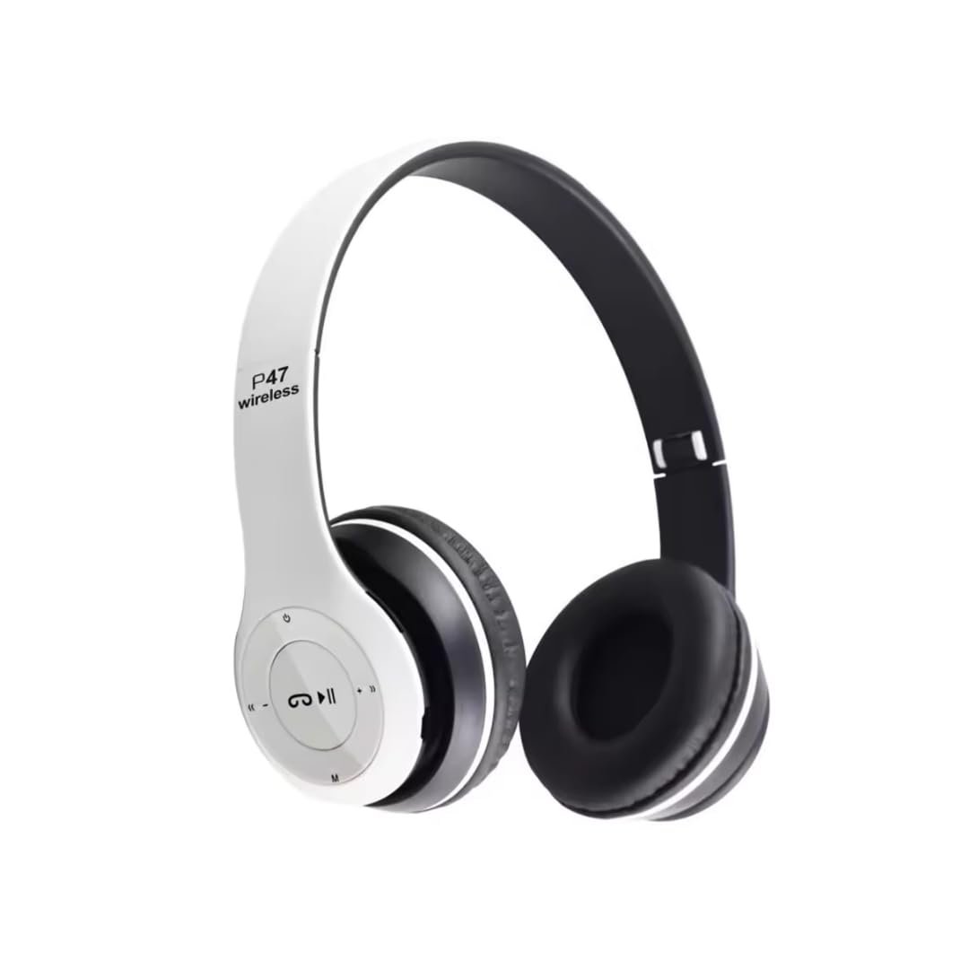 P47 wireless headphone Aesthetic Design, Precise Sound Earphones with a user-friendly design and a life-like rhythmic reaction can be a great accessory for music enthusiasts. With an over-the-ear design, this headset lets you chat all day comfortably with cushioned. Durable Earphone With mic Tangle Free cables and Call Receive / Cut and Play / Pause Button (Change Track on Double and Triple Click) makes it easier to have long lasting, tangle and frustration free music and call experience. communicate and enjoy impressive entertainment audio in style. MP3 player(PLAY BY INSERTING TF CARD), AUX – a standard 3.5 mm jack for a wired connection. These sweat resistant earphones are great for running and gym workouts. With an over-the-ear design, this headset lets you chat all day comfortably with cushioned. Over-ear & Adjustable headband Design: Adjust the headband for tight and comfortable wearing by yourself, no worries of the headset falling Multi functional Design: Support wireless connection via Bluetooth; Support SD card playback, insert the SD card into the headphone to play music when there is no phone Built-in Battery: With high performance rechargeable polymer battery, this headphone provides 5-6 hours of music time.