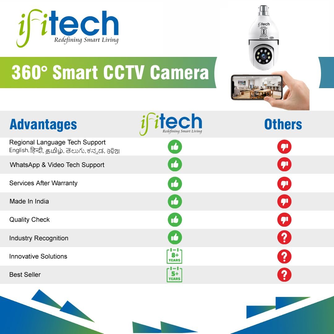 This camera can be fitted in any Indian holder without the need of any converter for change of holder.This Camera comes with 1 year “warr anty” and tech-support on WhatsApp and Phone in most Indian language, most such camera either do not have support & “warr anty” or have just few months.This camera is Made in India product, and helps you get its service and parts even post “warr anty” period.IFIHomes has been recognized and have won various awards for this home security products from leading Publications & Agency.