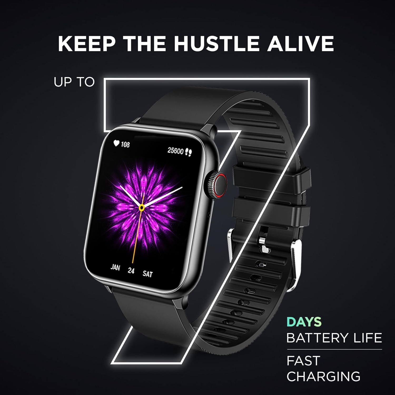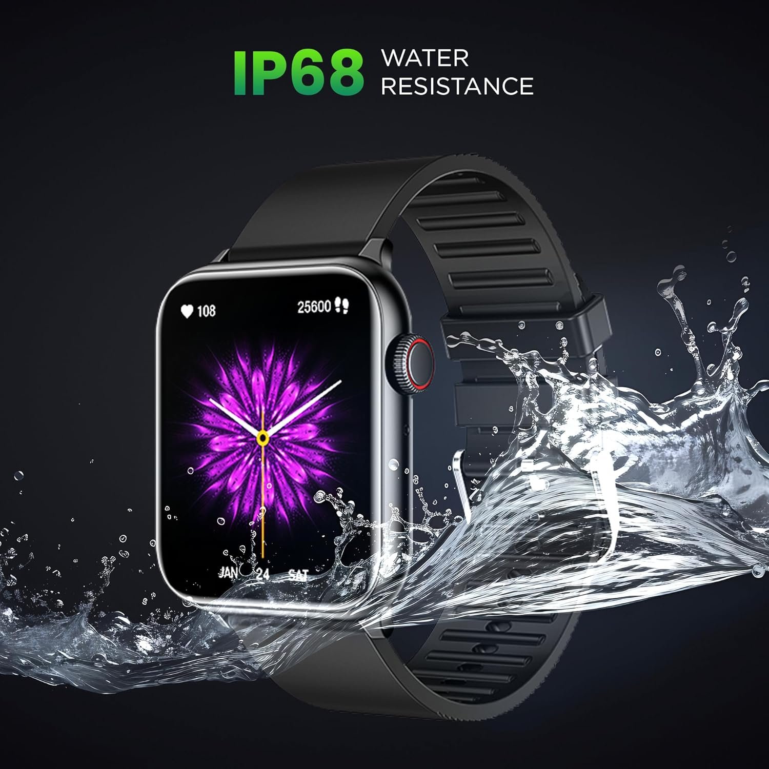 Enjoy up to 7 days of usage and 25 days standby with Insta Charge technology. With an IP68 rating and 5 ATM water resistance, this durable watch is built for any adventure—whether swimming, hiking, or enduring the rain.