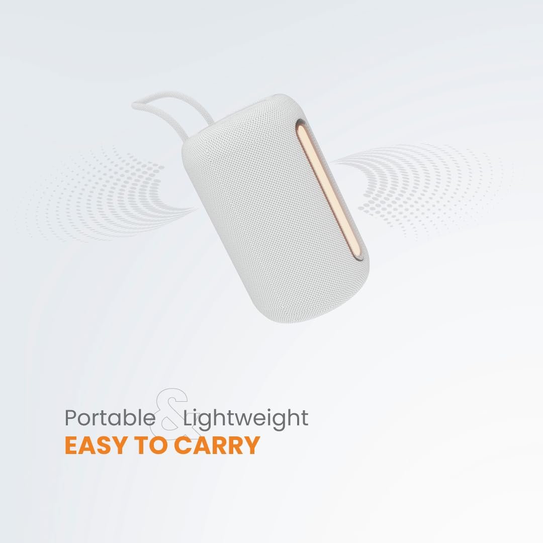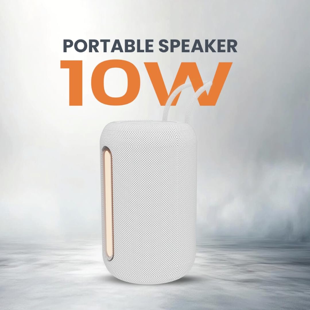 JUST CORSECA Sushi Shine 10W Bluetooth Speaker | V5.3 | FM, LED Light, USB, TF, TWS | 800mAh Battery | 6-Hour Playtime | 10m Range (White)