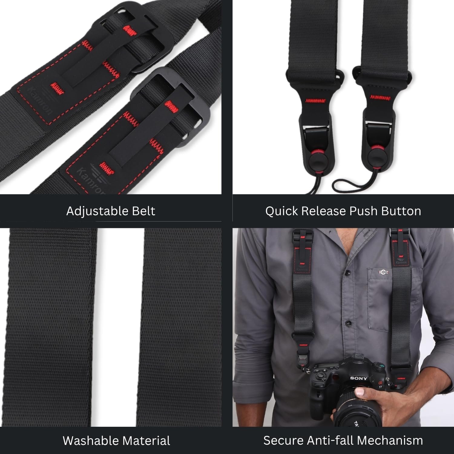 Elevate your photography experience with this premium camera sling strap from Kamron. Crafted with sturdy woven nylon material, this versatile strap ensures both comfort and durability during extended shooting sessions. The thoughtfully designed adjustable belt system allows for perfect positioning, while the quick-release push button mechanism enables swift camera access when that perfect moment arrives. Distinguished by its elegant leather accents and grey woven texture, this strap seamlessly blends style with functionality. The secure anti-fall mechanism provides peace of mind for your valuable camera equipment, whether you’re using a DSLR, mirrorless, or action camera. The washable material ensures easy maintenance, keeping your strap looking fresh even after extensive use. Perfect for both professional photographers and enthusiasts, this strap’s ergonomic design distributes weight evenly across your shoulder, reducing fatigue during long photography sessions.