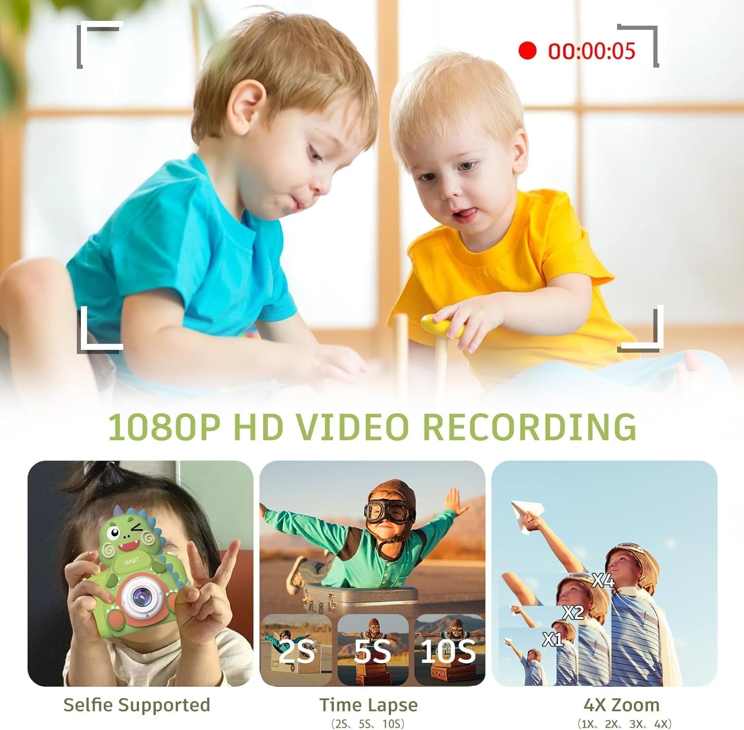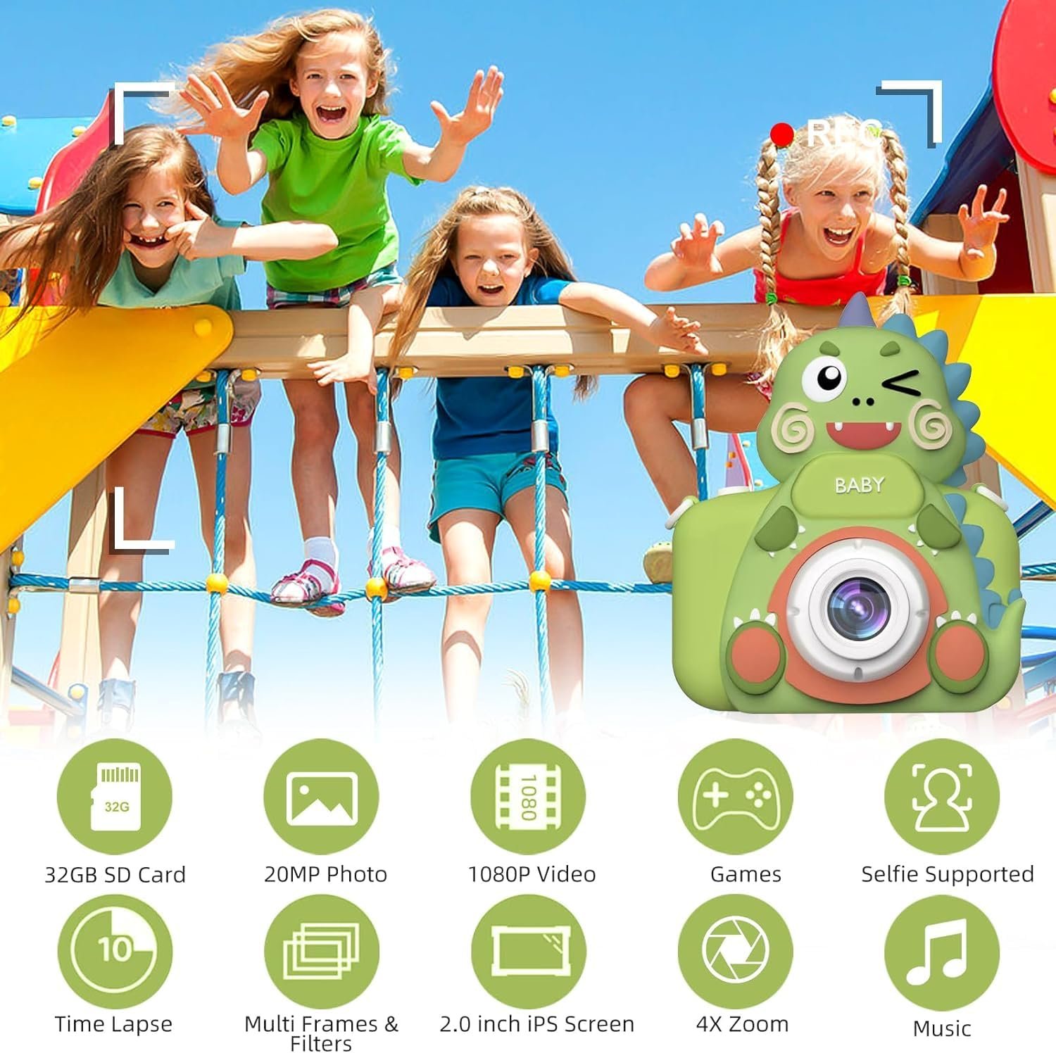 Kids 480MP Dinosaur Toddler Digital Camera – 1080P HD Video, 32GB – Boys & Girls, Ages 3+