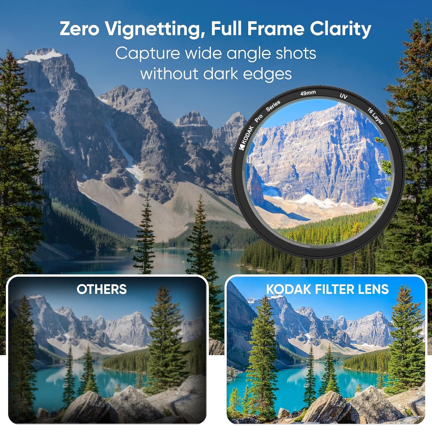 KODAK 49mm Pro Series Camera Lens UV Filter|16 Layer Multi Coating for DSLR Camera Lens|Protection from UV Rays, Dust & Scratches|Aluminum Lens Ring|Waterproof|Black