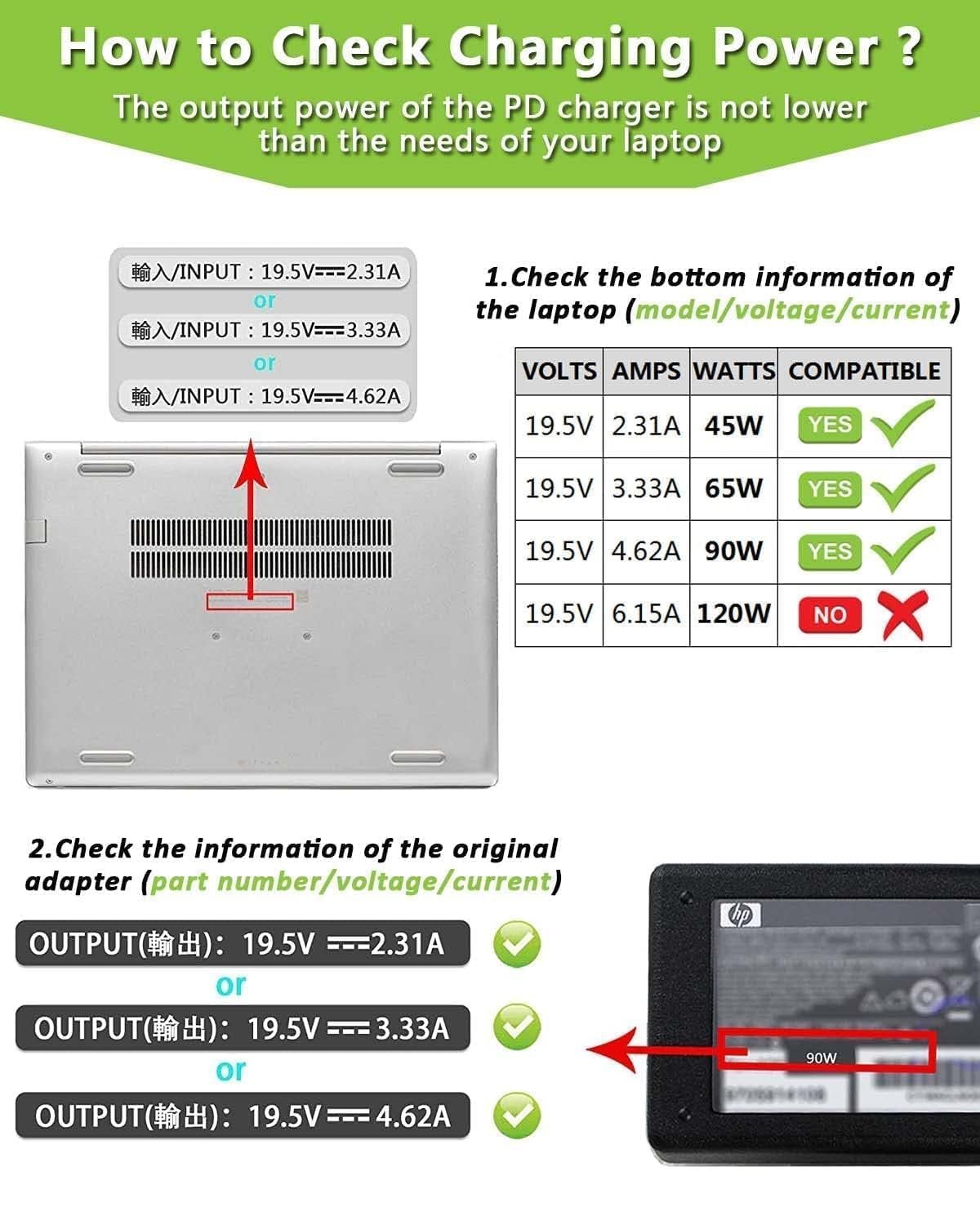 3.USB C to DC 4.5×3.0mm Jack Plug Converter – Female Type C to male 4.5mm x 3.0mm barrel ( 0.6mm Pin ) round tip 100W connector plug that can connect HP PC to a PD AC adapters ; So you can use your PD power charger cable with your laptop