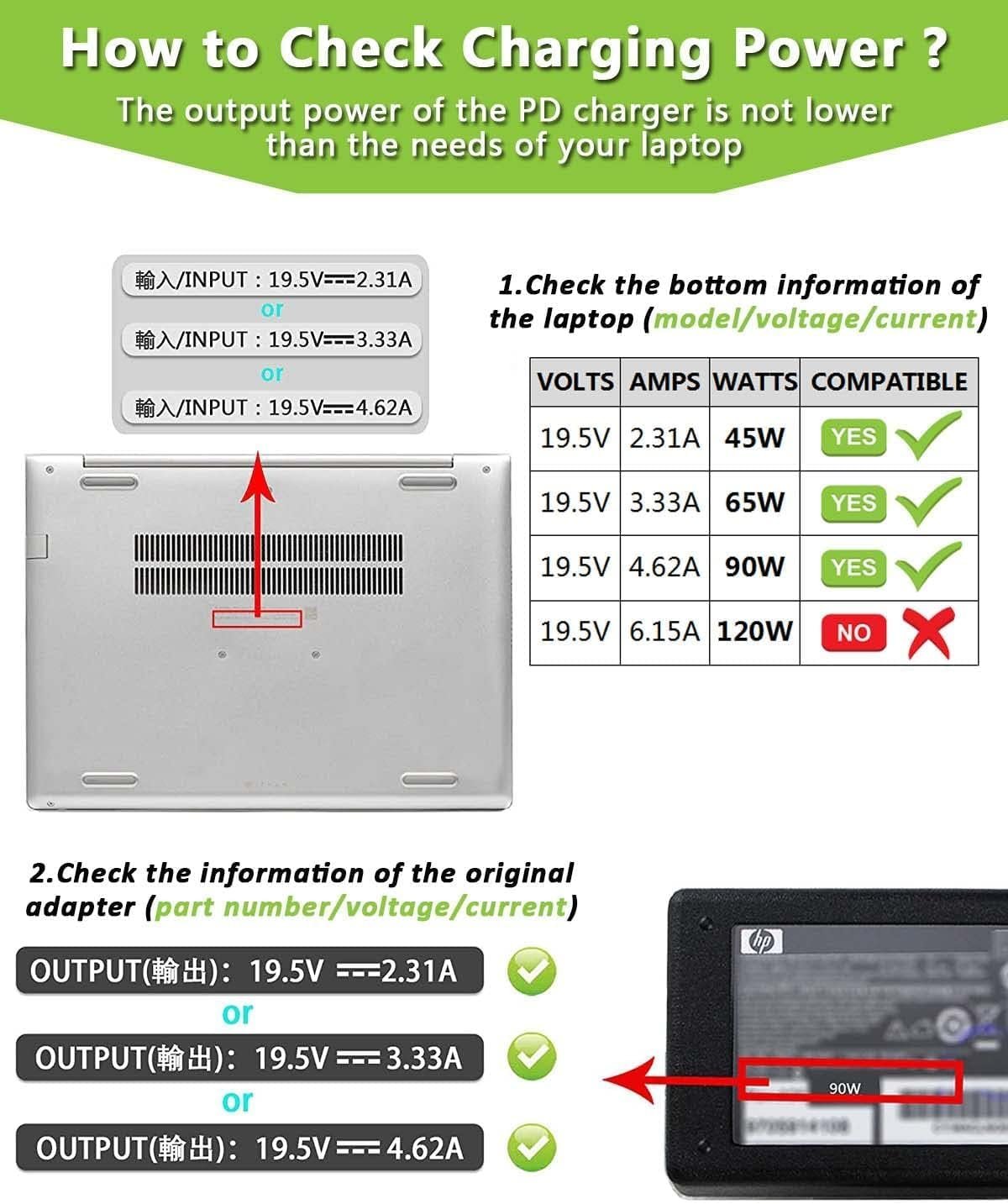 2.Laptop USB C Charging Adapter – Universal PD charger connector tips for HP Zbook , Elitebook , Pavilion x360 11 13 15 m3 , Split 13 x2 Spectre x2 , Envy x360 x2 13 15 M6 , Stream 11 13 14 X2 , 15-d -f -g -r -af -ay -bs -g -bs Notebook & Probook: 430 G3,G4,G5,G8 / 440 G1,G3,G4,G5,G6,G7,G8 / 450 G3,G4,G5,G6,G7,G8 / 455 G3,G4,G5 / 470 G3,G4,G5 / 640 G2, G3,G4,G8 /645 G2,G4 /650 G2,G3,G4,G7,G8 etc.