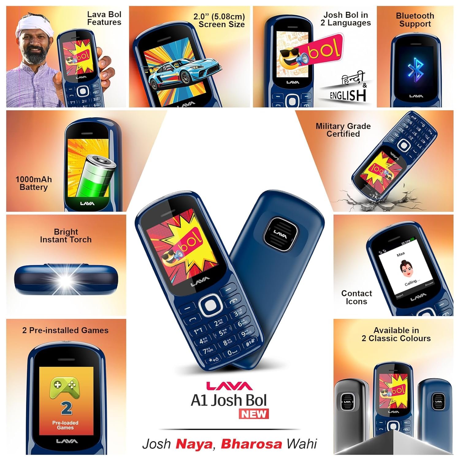 Lava A1 Josh (with BOL Feature) Dual Sim Keypad Mobile Phone | Long-Lasting Battery |22 Launguages Read Support | Auto Call Recording | Call Blink Notification (Blue)