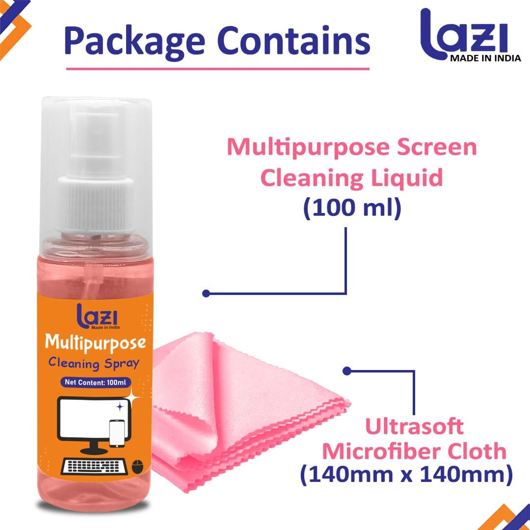LAZI 2 in 1 Laptop Cleaning Kit – 100ml Pink Liquid Spray Screen Cleaner with Microfiber Cloth for Laptops, Mobiles, Phones, iPhone, MacBook, Electronic Gadget, PC, LED, LCD, TV and Computer Screen