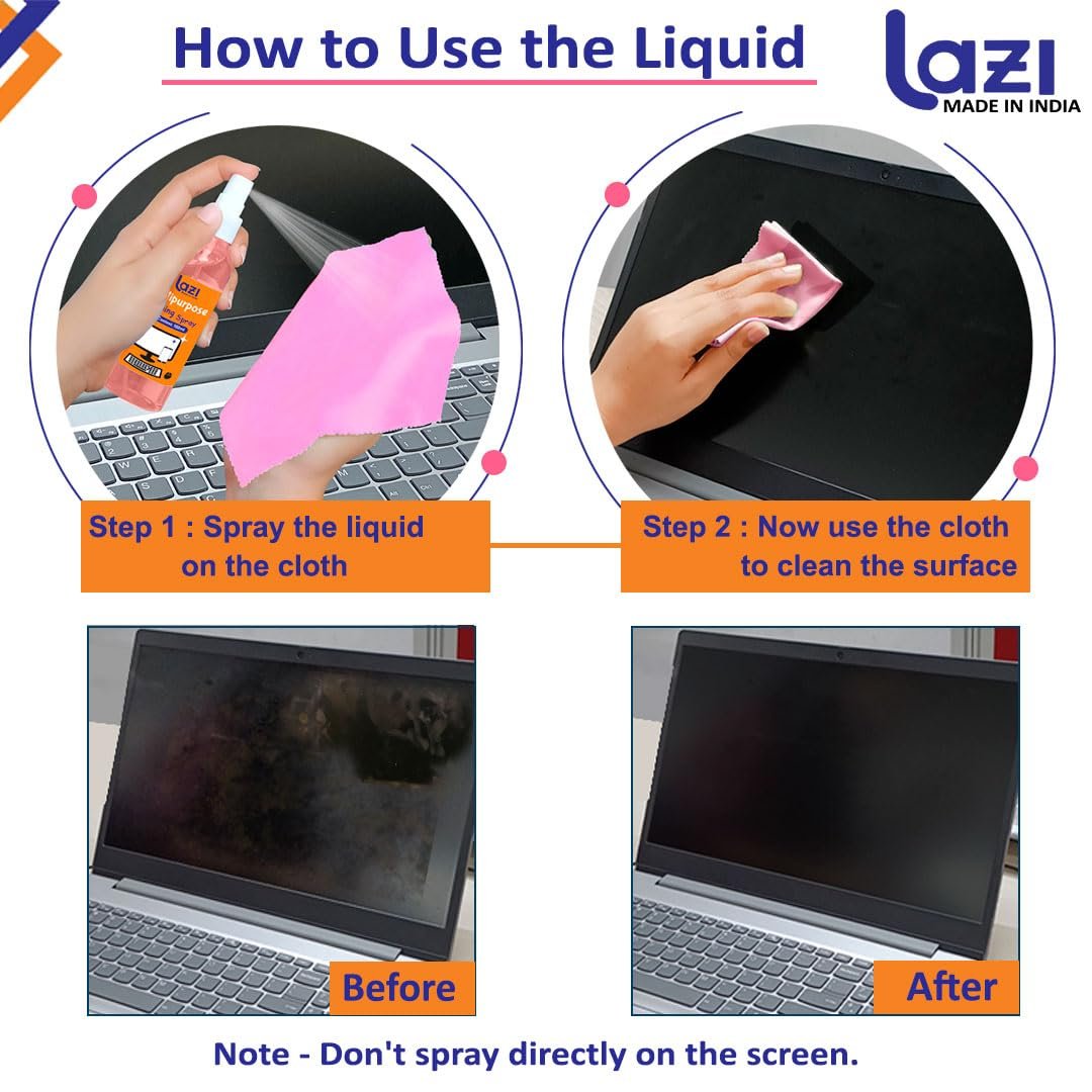 Laptop Cleaning Kit Includes: Laptop cleaner kit contains 100ml of screen cleaner spray which easily cleans dirt dust with help of soft and smooth micro fibre cleaning cloth Size (140cm x 140cm).