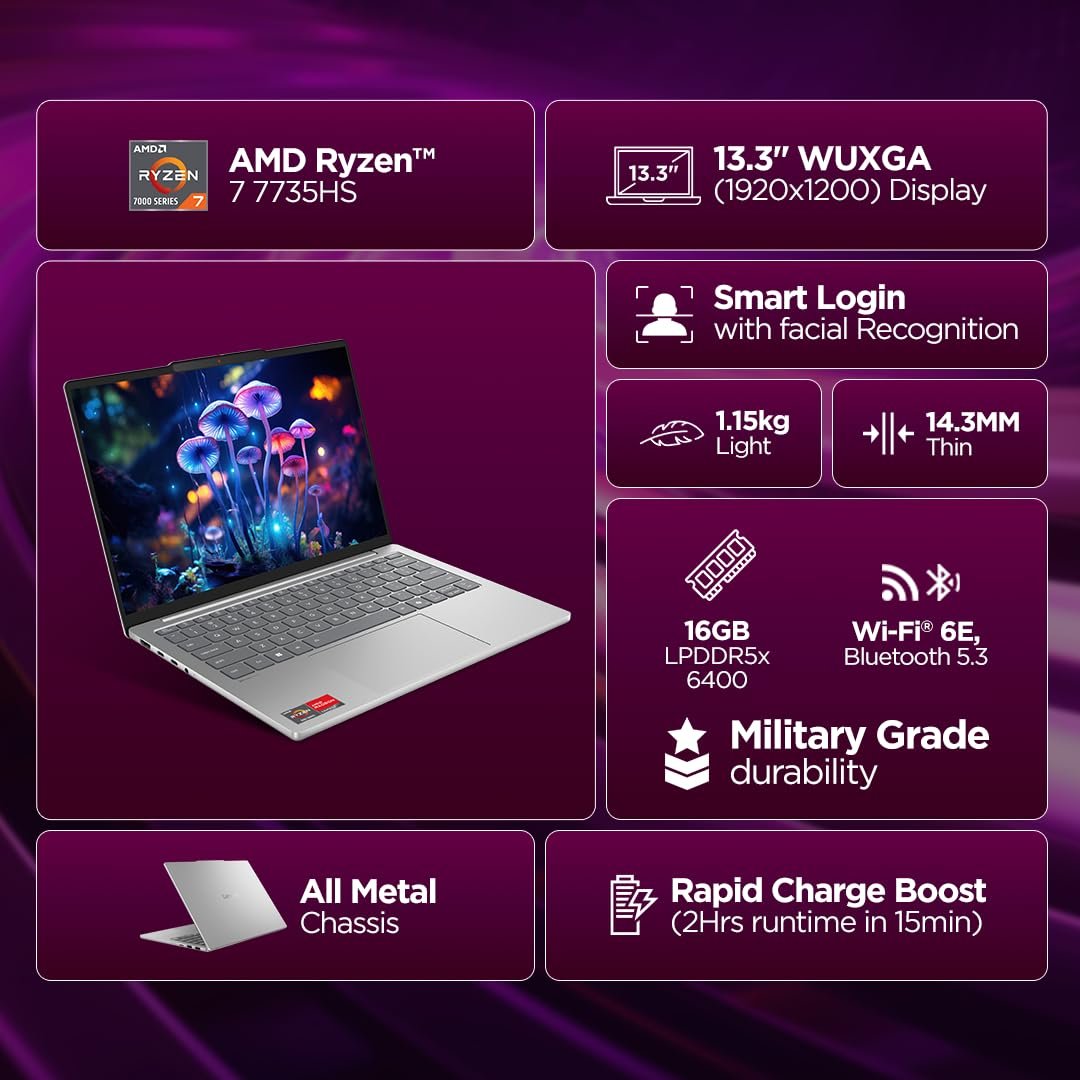 Processor: AMD Ryzen 7 7735HS | Speed: 3.2GHz (Base) – 4.75GHz (Max) | 8 Cores | 16 Threads | 16MB Cache