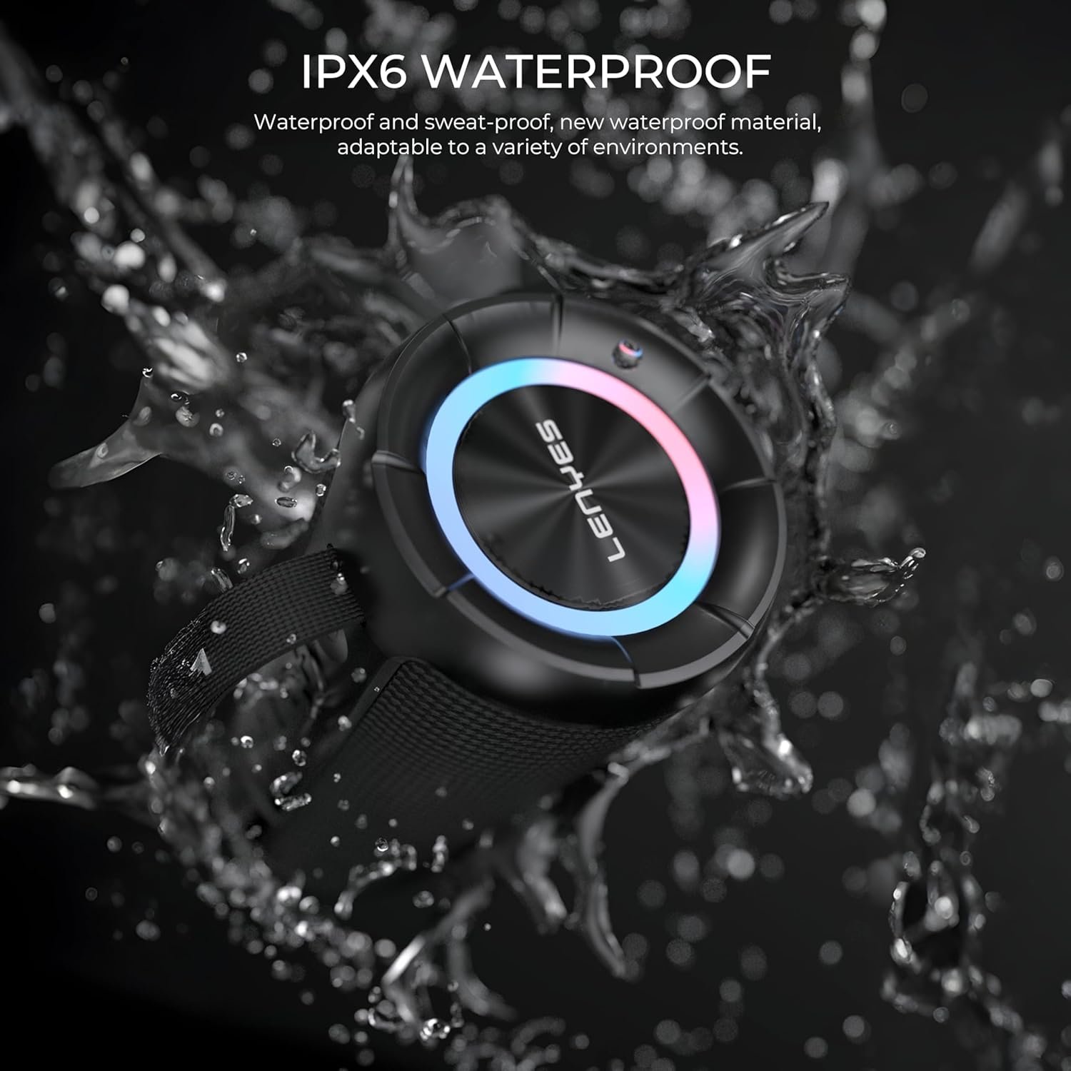 IPX6 Water-Resistant & Customizable RGB Lights: Take your speaker anywhere with water resistance and enjoy RGB lights that sync to the beat. Personalize lighting modes via the Lenyes Audio App for a unique party experience.