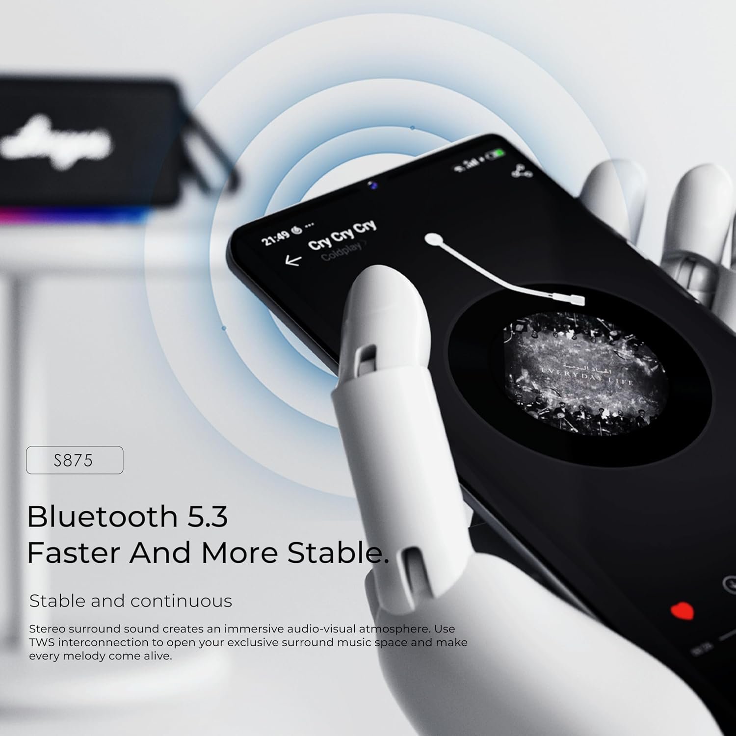 Bluetooth 5.3 & Multi-Connectivity Options: Connect wirelessly with Bluetooth v5.3 for lag-free audio, or use AUX cable, TF card, or USB drive to play music from any device—flexible connectivity for every situation.