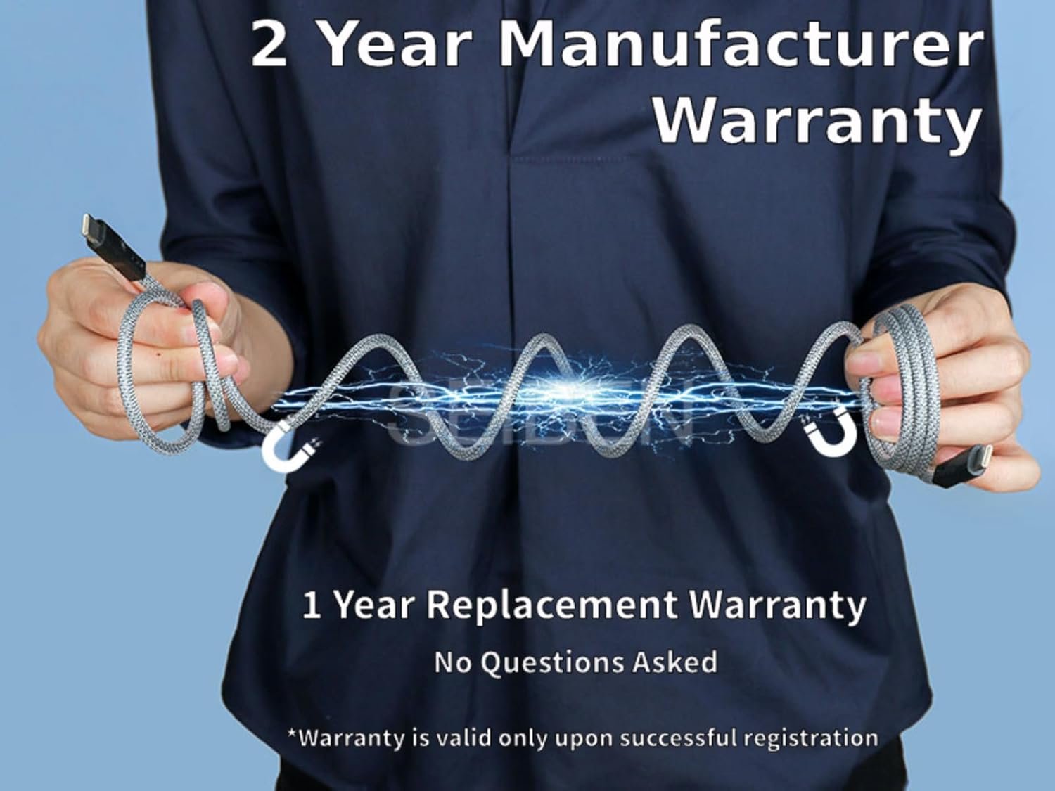🧲【Product Warranty】: SEIBEN Magcable comes with a 2-year warranty for any manufacturing defects and a 1-year replacement warranty – no questions asked, applicable only on successful Warranty Registration within 24 Hours of Delivery