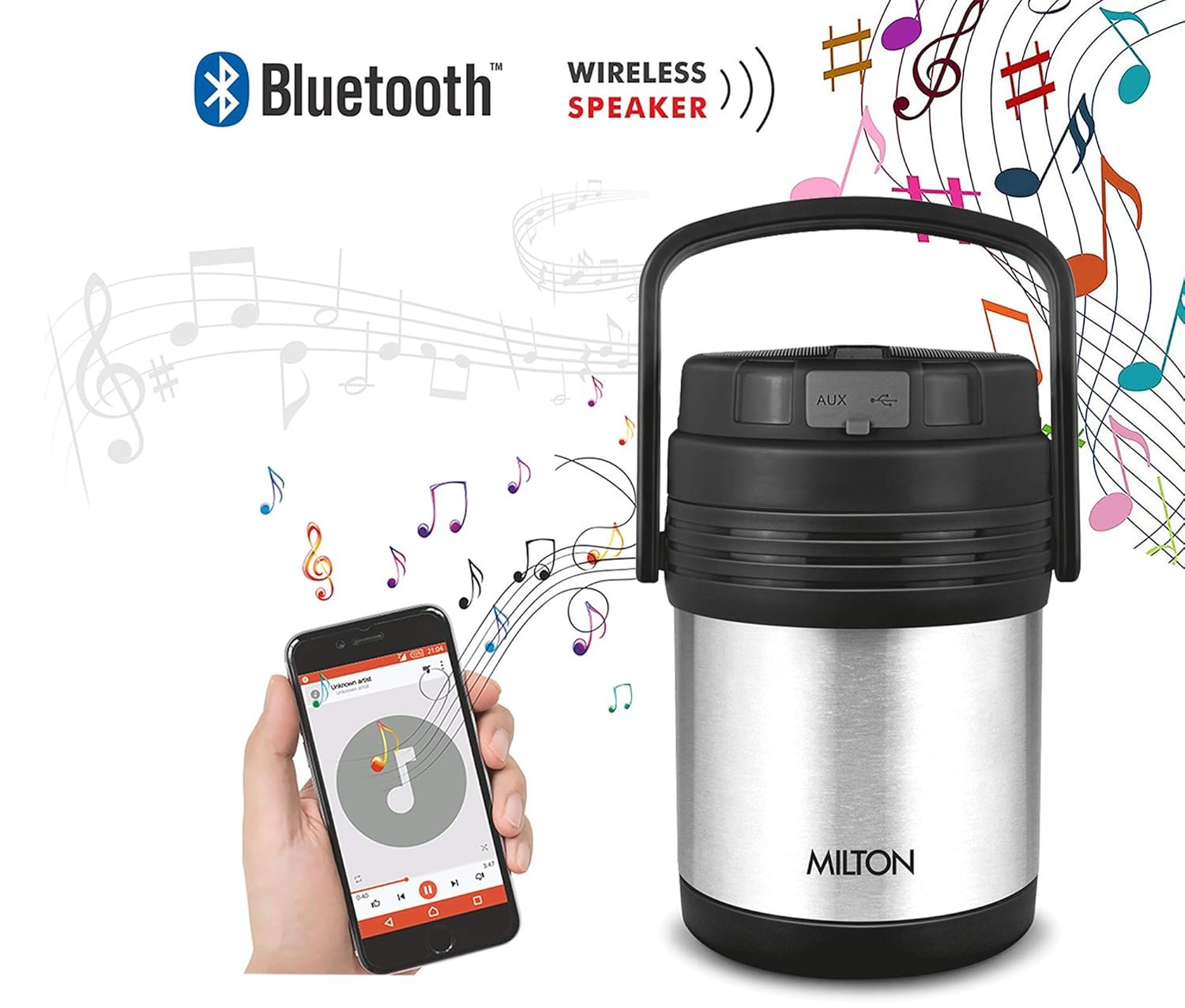 Milton woofer tiffin is made from 304 stainless steel outer body with wireless bluetooth speaker. This insulated double walled vacuum water bottle is designed for maximum temperature retention that keeps your food hot without altering their temperatures for a prolonged period of time. Woofer tiffin includes woofer tiffin lid speaker, usb to micro – usb charging cable, 3.5 mm audio cable, instruction manual. It is easy to carry. Cleaning instruction: To clean the tiffin, twist to separate the speaker lid from the tiffin body. Clean the tiffin separately avoid damage to the speaker. Hand wash recommended use an non-abrasive cleaner to clean the speaker, wipe with a damp cloth.