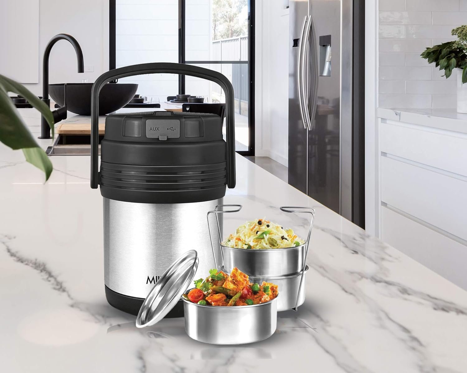 Milton Woofer 3 Thermosteel Wireless Bluetooth Speaker Tiffin (3 Containers) Steel Plain