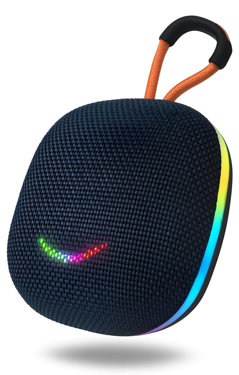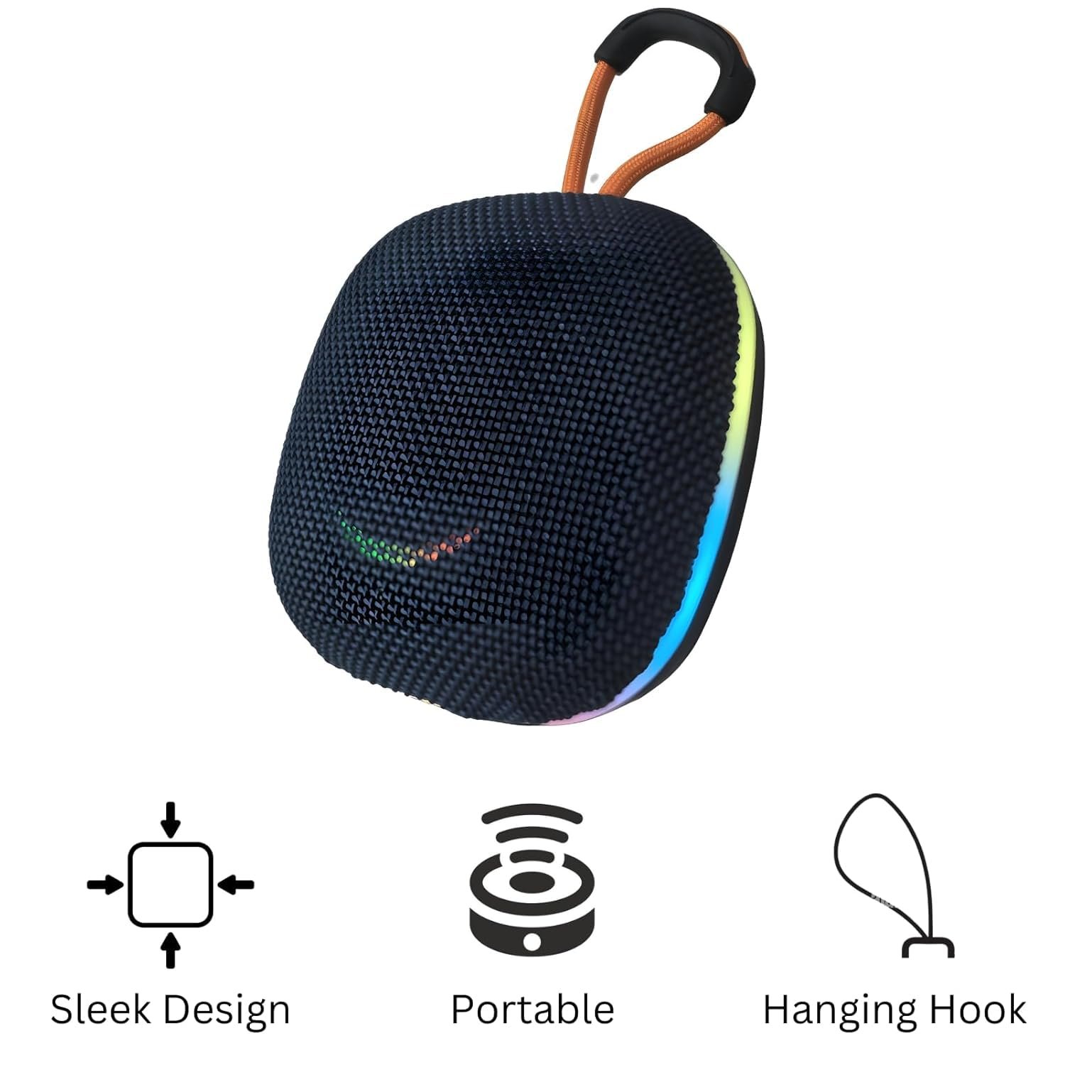 Mini Fusion RGB LED Colorful Light Portable Wireless Bluetooth Speaker, Call Function, Fabric Finish with Carry Loop, BT 5.3 Loud Sound, Stereo Speaker Also Support TF Cards/FM Radio – Black