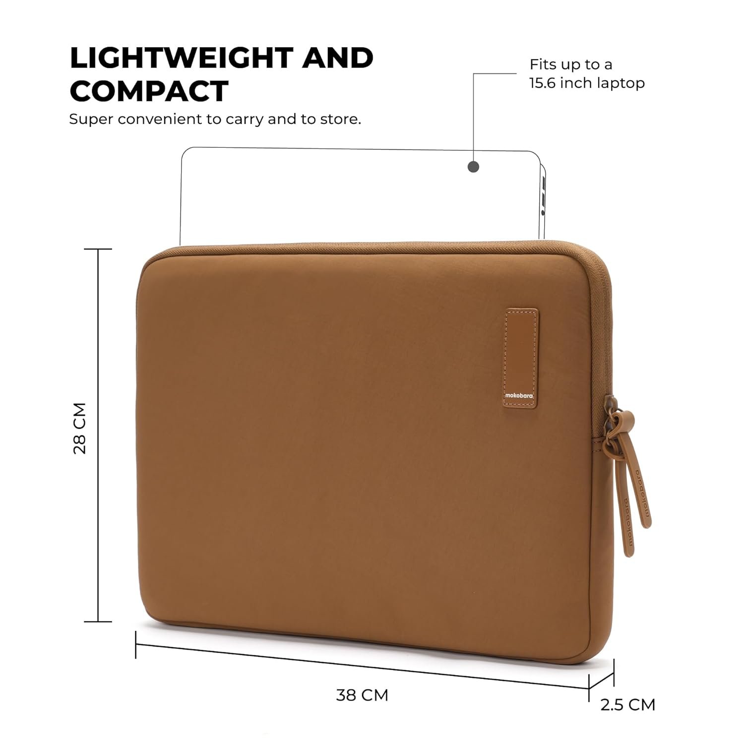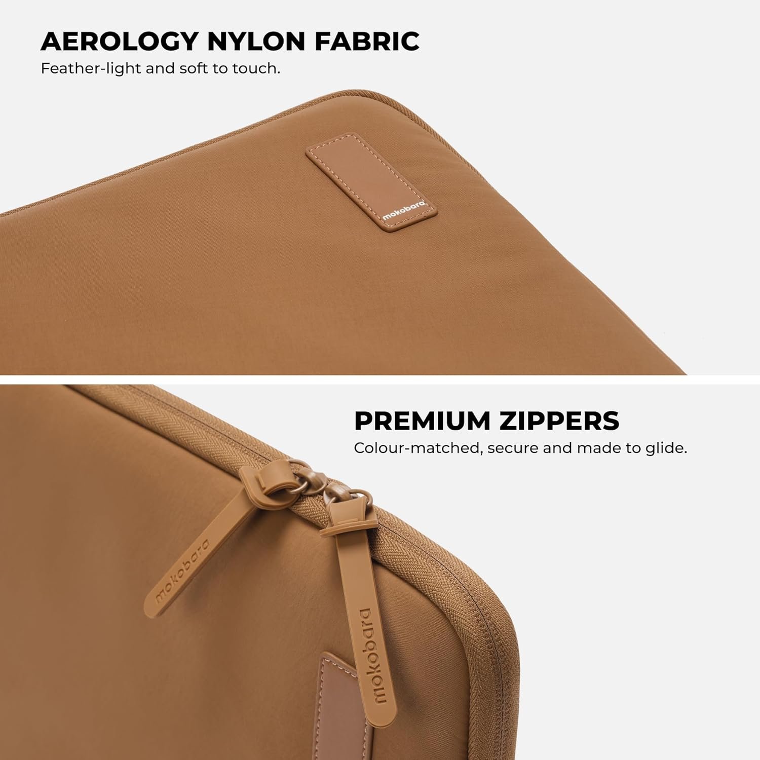 MOKOBARA Aisle Laptop Sleeve | Medium | Aerology Nylon | Compatible with 15.6″ Laptops/MacBook | Lightweight Sleeve with Soft Microsuede Lining & Premium Zip Closure | Bear Hug (Brown)