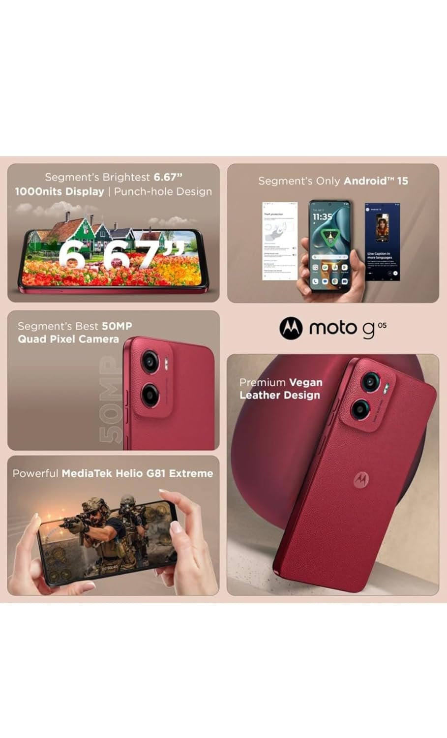 Motorola G05 4G (Plum Red, 4GB RAM, 64GB Storage)