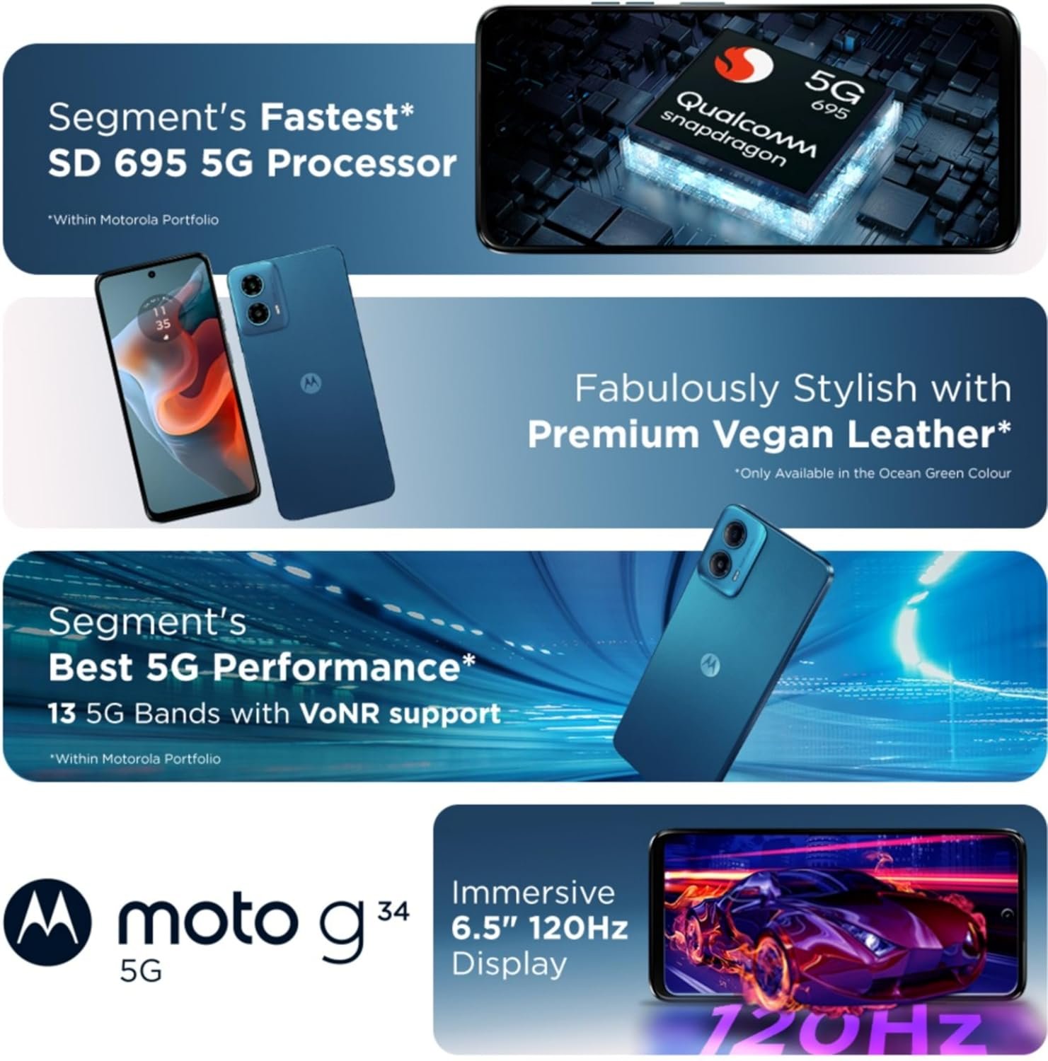 Motorola G34 5G (Ice Blue, 8GB RAM, 128GB Storage)