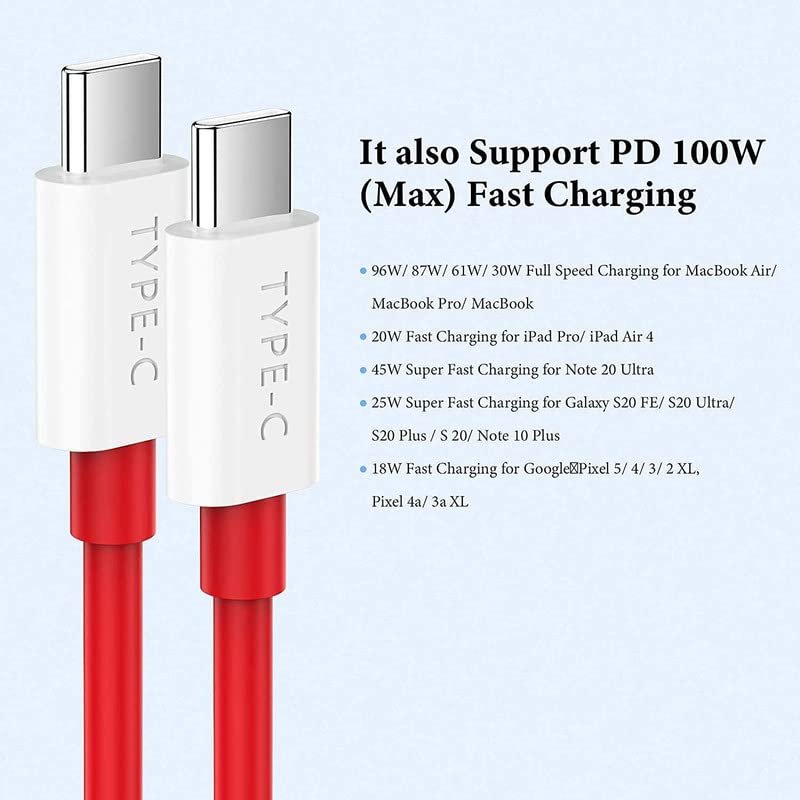 MYVN Compatible for OnePlus 9 Pro 9 8T Fast Charging Cable 6.5A Warp Charge USB C to USB C Cable, 1 mtr Super Fast Charging Cable (Red)
