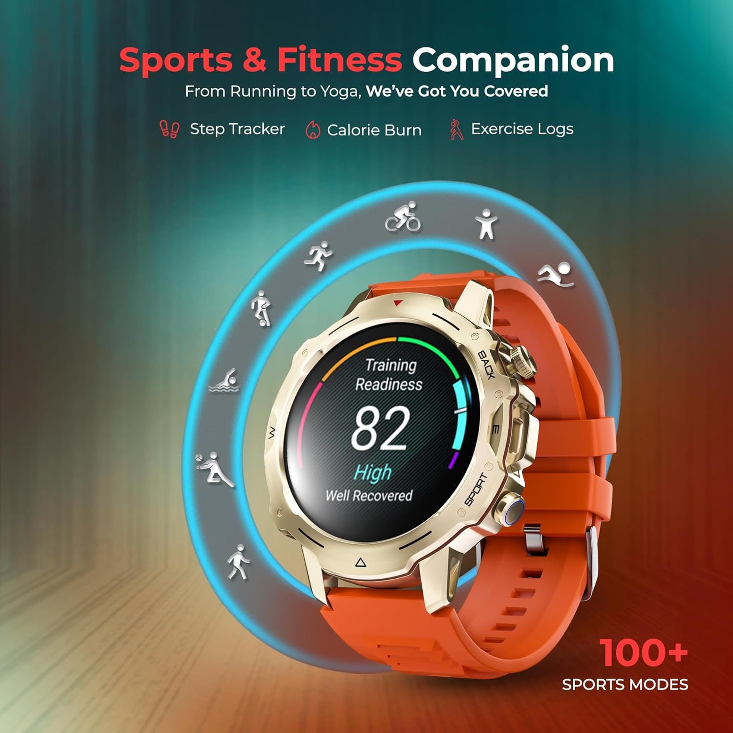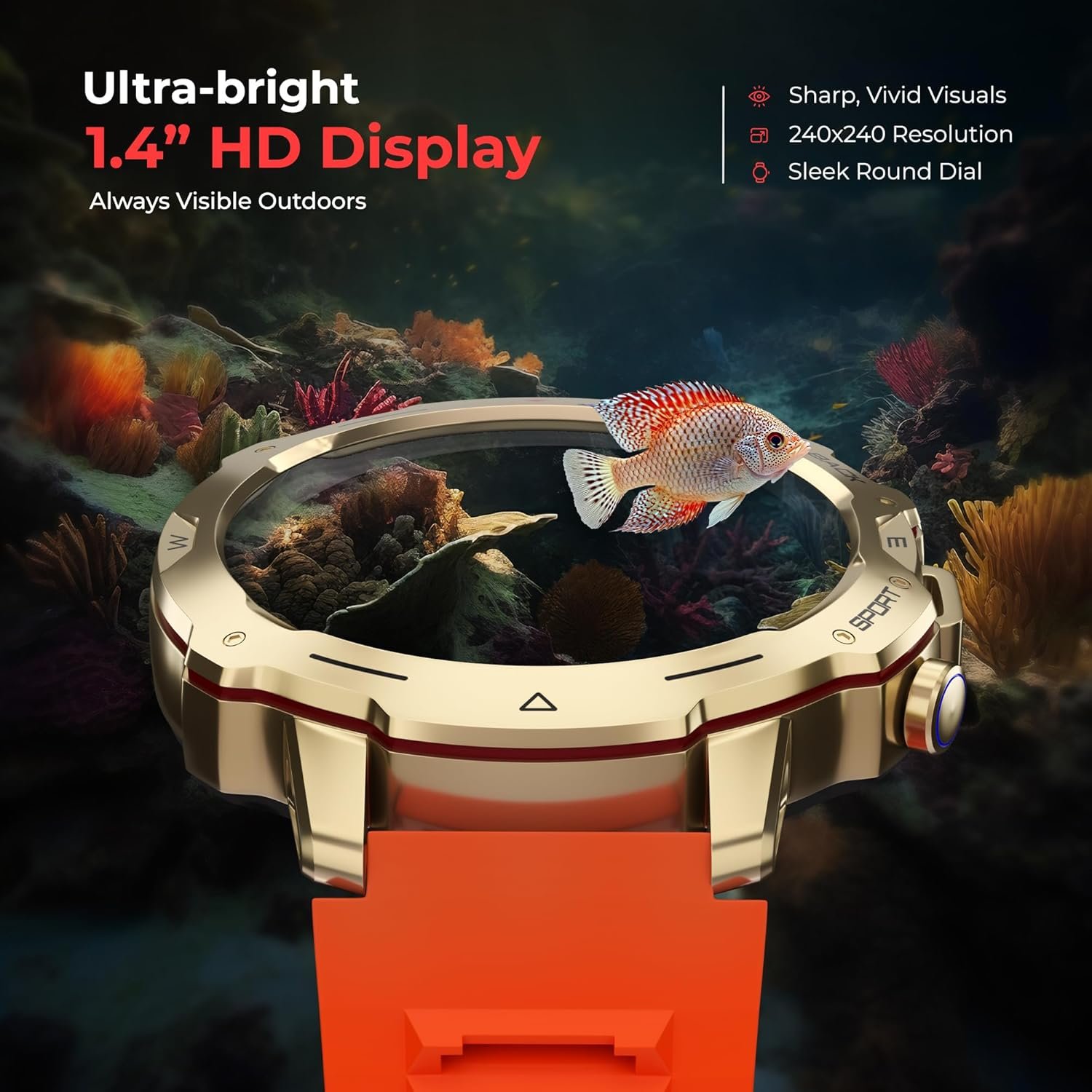 Nervfit Blaze Smartwatch 1.4″ LED Display, Bluetooth Calling, IP67 Waterproof, Heart Rate & SpO2 Monitor, Sleep & Stress Tracking, 7-Day Battery, Fitness & Sports Modes (Vibrant Gold)