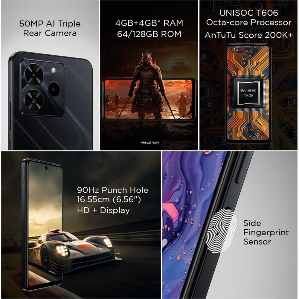 Enjoy seamless multitasking with 4GB RAM and 4GB expandable RAM, ensuring smooth performance. With up to 64GB storage, store more apps, photos, and videos without compromising speed or efficiency.