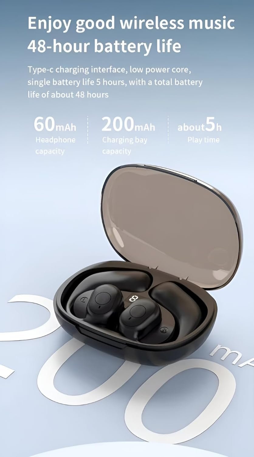 🎵Powerful Bass- True wireless earbuds Bluetooth open ear with powerful bass enhances the energy and intensity of your music, inspiring you to push through your fitness routine with added motivation and enjoyment.