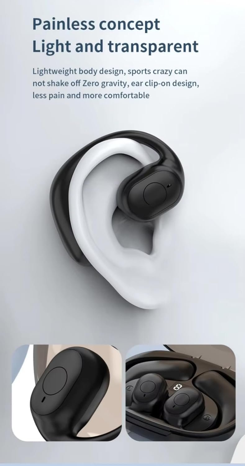 🎵DSP Noise Canceling Microphone- Wireless earbuds Bluetooth over ear has a build-in microphone for phone calls. Open ear earbuds wireless Bluetooth can filtering 95% of background noise to provide a clear call and audio experience. Open-ear headphone is the best companion for office, home working, travel,business, online teaching, conference, etc.