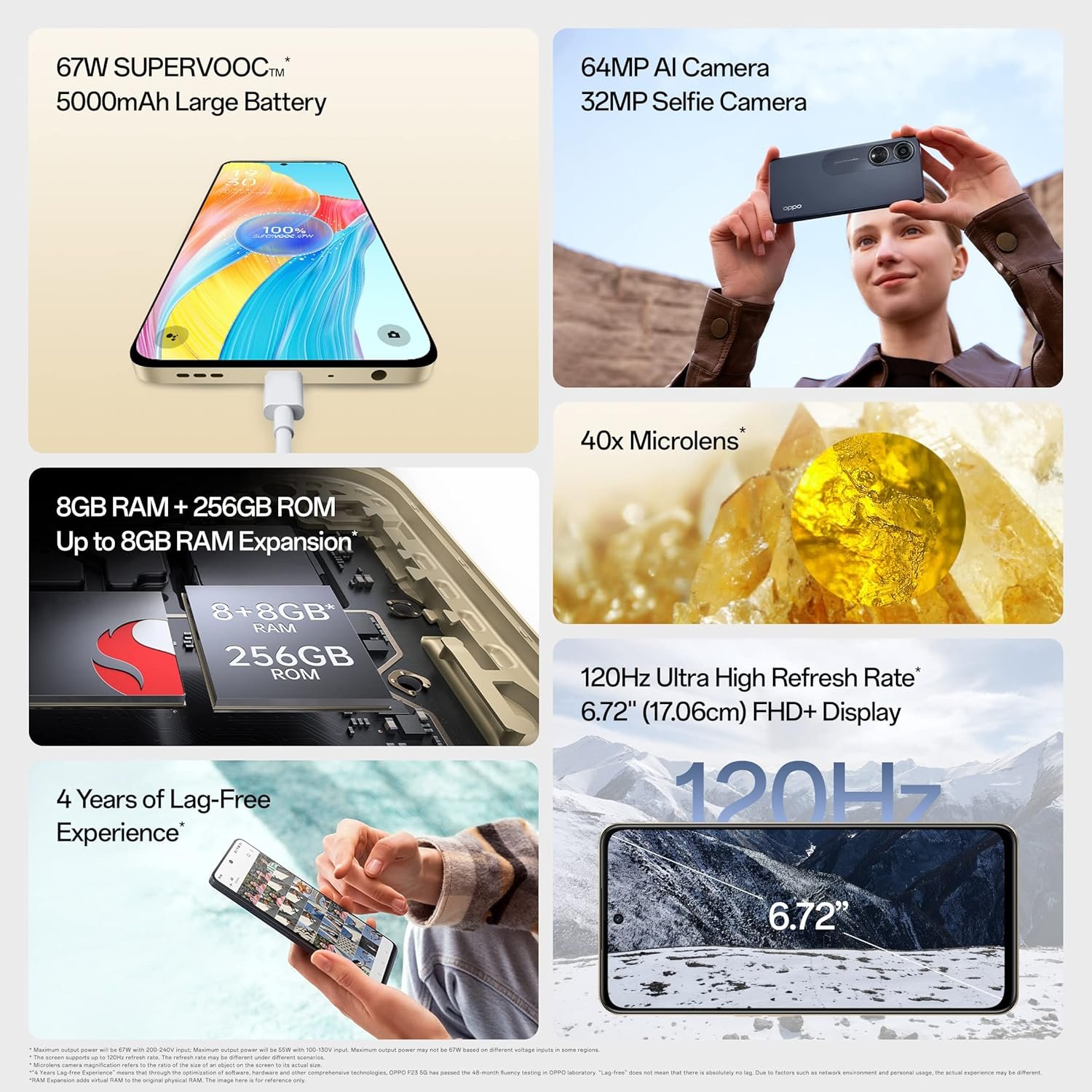 OPPO F23 5G (Bold Gold, 8GB RAM, 256GB Storage) | 5000 mAh Battery with 67W SUPERVOOC Charger | 64MP Rear Triple AI Camera with Microlens | 6.72″ FHD+ 120Hz Display | with Offers