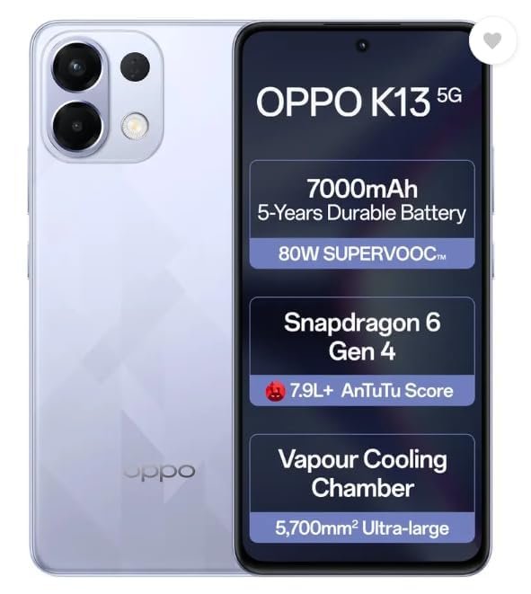 Maximum Play, Minimum wait! Huge 7000mAh battery that lasts longer with 80W SUPERVOOC for super-fast charging and 5-Year Durability. It has REAL graphite that’s REALLY exceptional, adding years to your battery’s life. Graphite anodes deliver unmatched stability, superior thermal and structural performance over 1800+ charge cycles. 80 W SUPERVOOC Flash Charge Charging 62% in 30 mins Power up in minutes with the 80W SUPERVOOC Flash Charge on the OPPO K13 5G, so even when you’re in a rush, you’re still good to go. Premium touch experience Touch That Works, be it Rain or Shine Whether your hands are wet or you’re wearing gloves, the screen stays smooth and responsive, thanks to Splash Touch. Tested Tough: 50+ Quality Checks9 and GOAT Quality Durablity Built to Endure Life’s Unexpected Challenges From button presses and port insertions to extreme temperatures, pressure bends, and even rain, OPPO K13 5G has passed over 50 tough quality tests. It’s this diamond-like durability that lets you handle everyday slips and surprises with total peace of mind. Game Hard, Stay Cool 6,000mm graphite + 5,700mm ultra-large Vapour Cooling Chamber keeps your phone cool. Topping the charts in the segment. Super-smooth 120 Hz, Super-bright OLED Flat Screen With a peak global brightness of 1200 nits, ensuring clarity even in bright outdoor conditions. Hardware-level low blue light control is employed to effectively diminish the emission of harmful blue light from the screen, safeguarding your eyes in various lighting conditions. Dual Stereo Speakers An immersive surround sound experience. With the audio style with greater loudness and different noise characteristics, it is easier to distinguish the mobile phone sound in the main noise of a noisy environment, and help you hear it more clearly. Infrared remote control You got the Power!! Effortlessly control devices like Projectors, TVs, ACs, and other everyday household devices with our IR blaster. 50MP Ultra-Clear Camera System Flagship-grade AI capabilities unleashed! Experience the Picture Perfect Portraits, Clear Night Photos, and Livephoto. AI Clarity Enhancer Focus on every detail! With One-click enhancement. Image Quality becomes high-definition, and with Quality enhancement,t it not only uses the large model to improve clarity& resolution, but also restores texture details with texture, real restoration processing, brightness, color, natural,l and real AI ultra-clear AI Unblur AI Unblur feature is designed to enhance image clarity, sharpen every frame, and unblur with just One Click. AI Reflection Remover No Reflection, Only Perfection. It can effectively remove reflections and restore the real scene of the scenery behind the reflection. AI Eraser Remove unwanted objects with one click. It is used to eliminate specific people or objects in the picture. Complete circle selection of passers-by or objects to be eliminated can automatically identify and eliminate Screen Translator Effortless Conversations! Travelling, studying, or scrolling? Translate an entire screen or just a snippet with a couple of taps. Get the info you need instantly, no matter the language. AI Writer Work Smarter, Error Free! Typos? Grammar slips? No worries. Check your work, rewrite it, or polish it like a pro. Whether it’s condensing thoughts or extending ideas, AI Writer has you covered. AI Summary Summed Up And Sorted! Cut through the clutter! Get quick, accurate summaries of any Word doc or PDF, with links to dive deeper when you’re ready for the details.