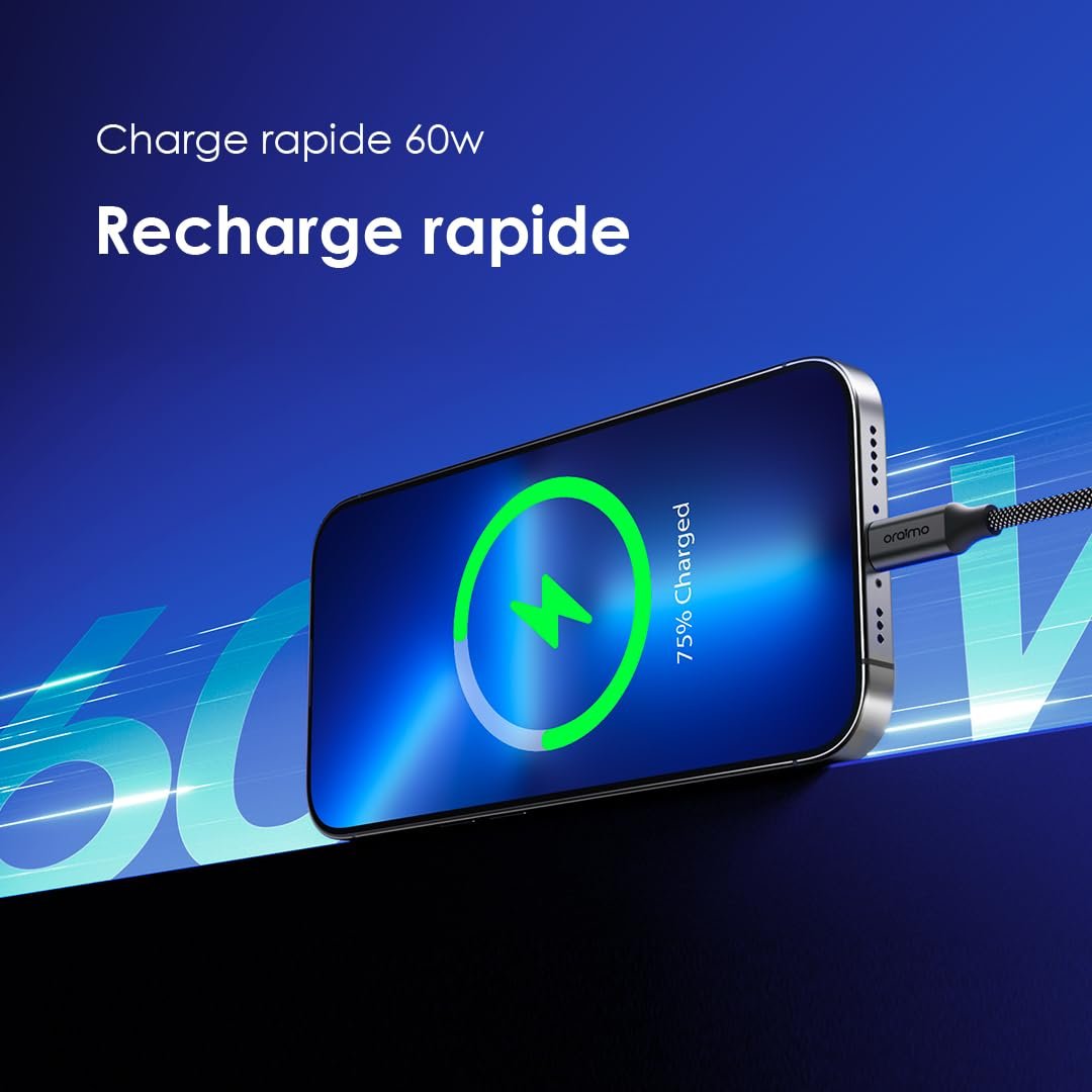 Oraimo Magnetic Type-C to Type-C Cable | 60W/3A Fast Charging | Self-Aligning & Tangle-Free | Bend-Proof & 1M Length Compatible with iPhone 15, Samsung Galaxy S25 Ultra, iPad, Macbook (OCD-710CC)