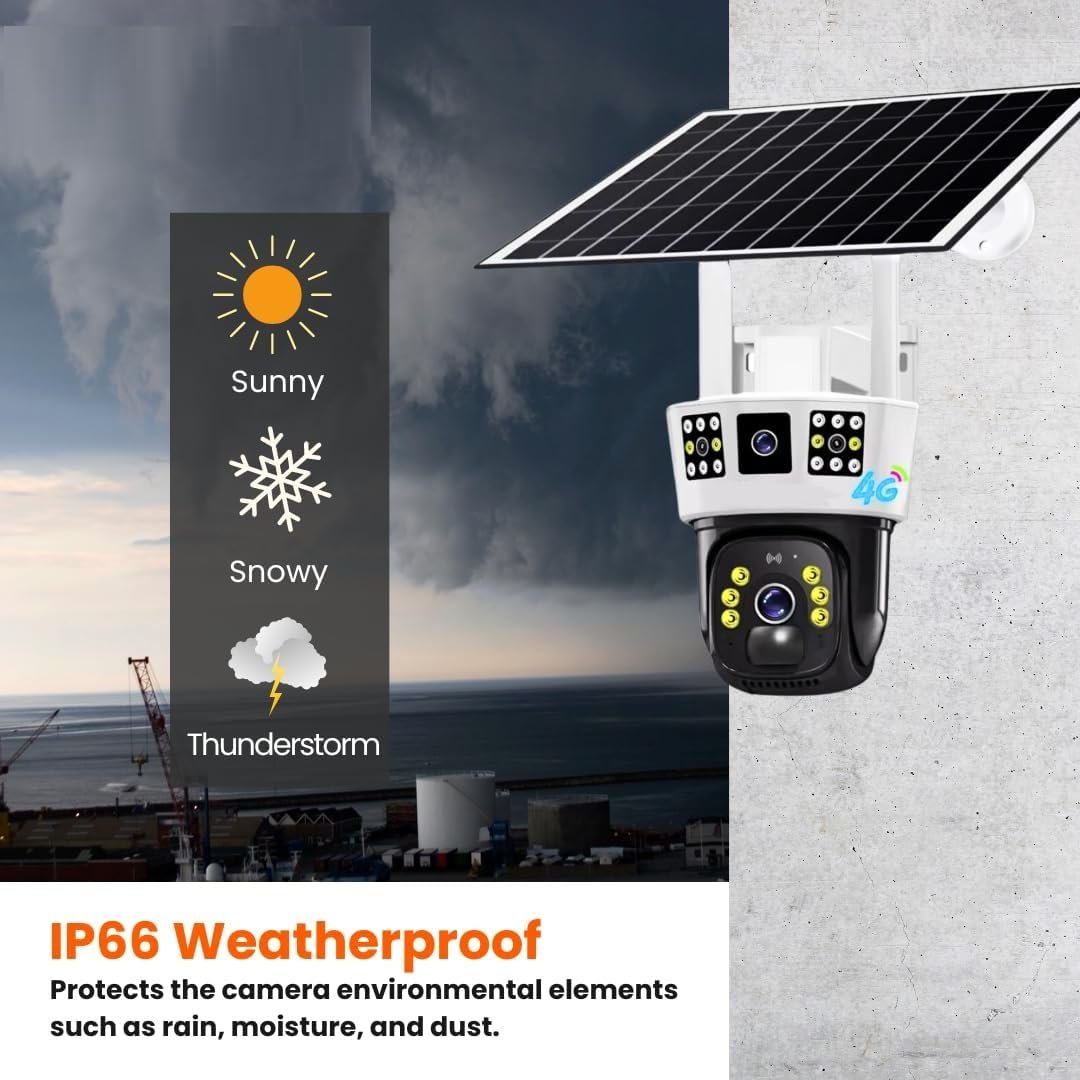 This 8MP Solar 4G SIM Support Pan & Tilt Zoom Dual Lens CCTV Camera is a versatile and robust surveillance solution designed for a range of outdoor environments, such as factories, farms, and other large properties. It offers several key features: 8MP High-Resolution Camera: The camera provides crystal-clear 8MP resolution, ensuring sharp, detailed footage for optimal security monitoring. Solar-Powered: Equipped with a solar panel, this camera is ideal for areas without easy access to electricity, making it environmentally friendly and cost-effective. 4G SIM Support: The camera supports a 4G SIM card, allowing for remote access and monitoring over cellular networks. This feature ensures continuous operation even in areas where Wi-Fi is not available. Pan & Tilt Functionality: The camera offers both pan (horizontal movement) and tilt (vertical movement), allowing it to cover a wide area with adjustable angles. You can remotely control the camera’s position for comprehensive surveillance. Zoom Lens: Equipped with a zoom lens, the camera enables users to focus on specific areas of interest with greater clarity and detail. Dual Lens Setup: This camera features dual lenses, which provide better image clarity and depth, ideal for monitoring different angles or capturing clearer footage in various lighting conditions. Two-Way Audio: With two-way audio functionality, you can communicate directly through the camera, enabling interaction with people on-site, such as factory workers or security personnel. Motion Detection: The motion detection feature helps to identify unusual movement, sending alerts to your mobile device or security system, enhancing real-time monitoring and immediate responses. Weatherproof & Durable: Designed to withstand harsh weather conditions, this outdoor camera is built with weatherproof housing, making it resistant to rain, dust, and other environmental factors, ensuring reliable performance throughout the year. SD Card Support (Up to 256GB): It supports an SD card of up to 256GB, providing local storage for recorded footage. This feature is essential for backup or situations where cloud storage is not available. This CCTV camera is ideal for security in large open areas like farms, construction sites, and factories, offering both flexibility and reliability in surveillance.