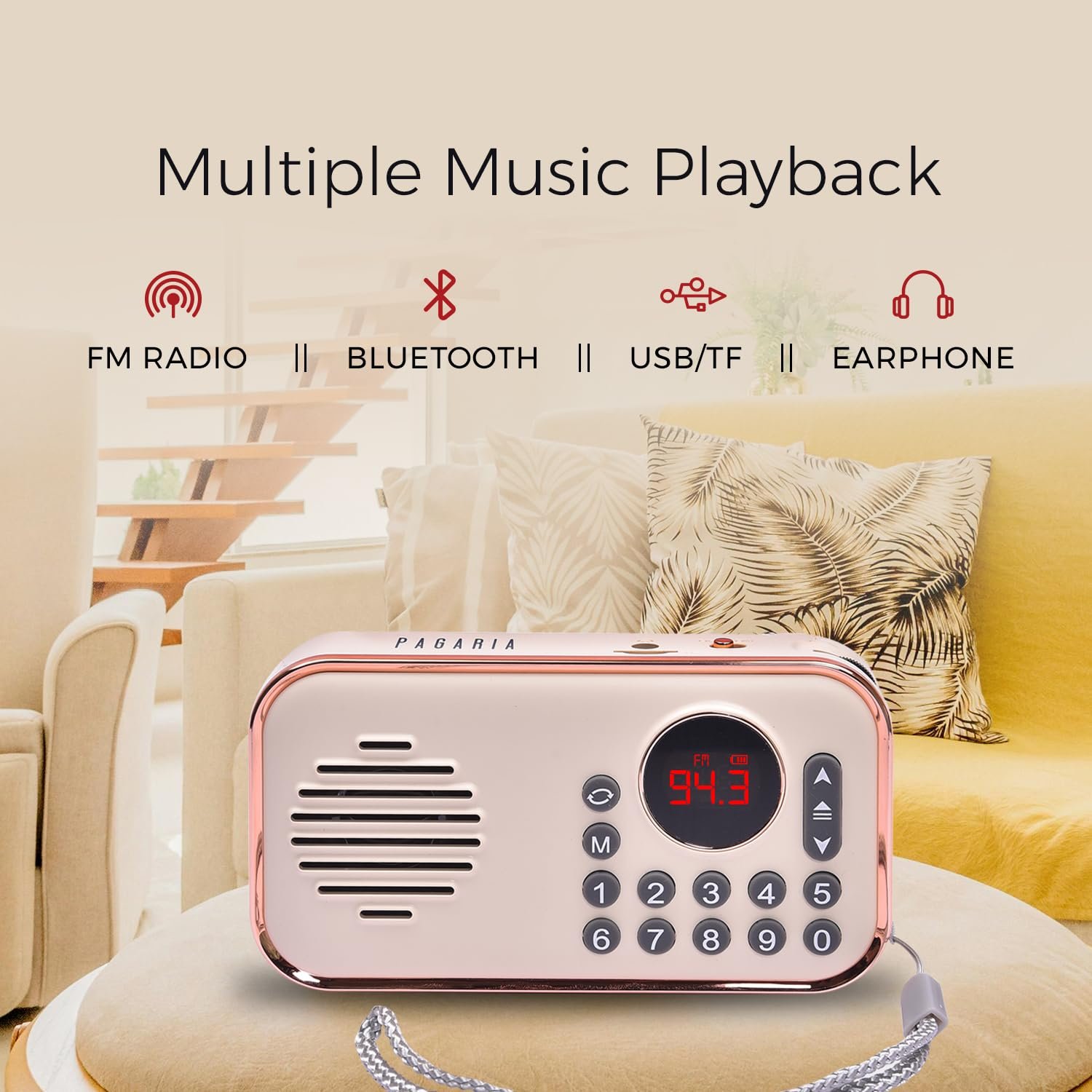 Pagaria Pocket FM Radio, 5 Watts with Bluetooth/USB/TF, Type C Charging, Earphone, Rechargeable, Model: WALKIE (White)