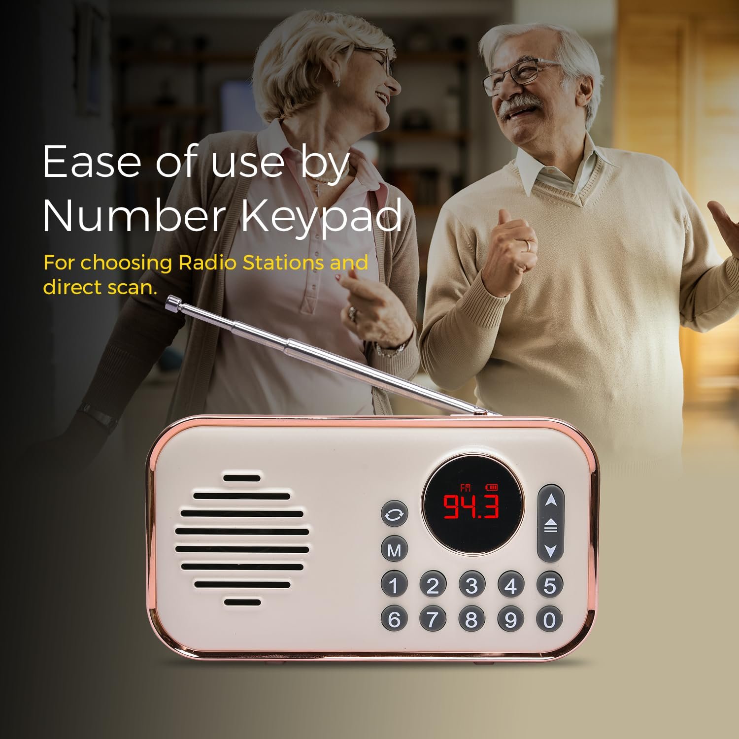 FM Radio with Telescopic Antenna: Get strong FM Radio reception with high signal receiver Telescopic Antenna. Get loud and clear signals making this your all time companion. Designed for ease of use with one touch Auto Scan & Save for radio channels. Also you can do direct station tuning by pressing the desired number of radio station, For eg: 94.3, you can also direct tune by pressing 9 4 3 on keypad.