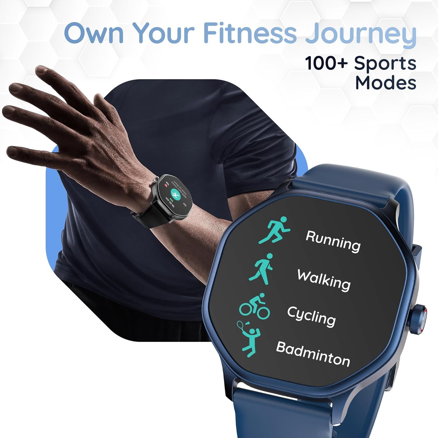 Pebble Hive Octa Display Smartwatch | BT Calling | Functional Rotating Crown | Multi Sports Modes | Sleep Monitoring | Health Suite | Customizable Watch Faces | in-Built Games & World Clock – Blue