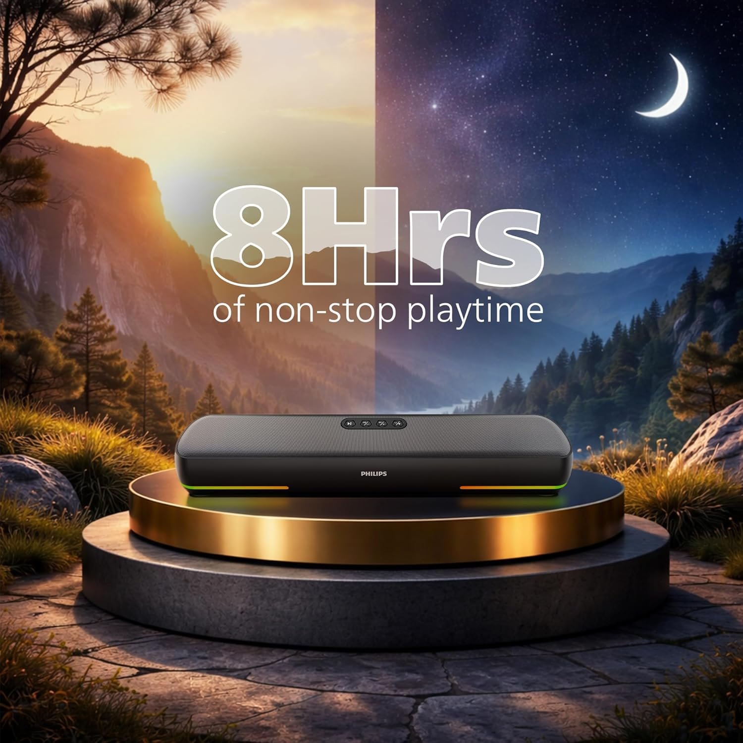 Long Battery Backup: Built-in 2000 mAh battery offers up to 8 hours playtime at 50% volume and recharges in 3-4 hours via USB-C for convenient daily use.