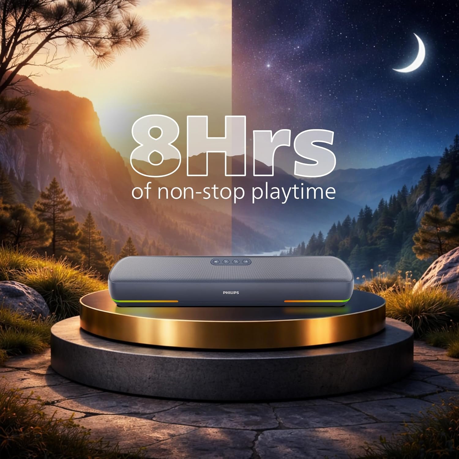 Long Battery Backup: Built-in 2000 mAh battery offers up to 8 hours playtime at 50% volume and recharges in 3-4 hours via USB-C for convenient daily use.