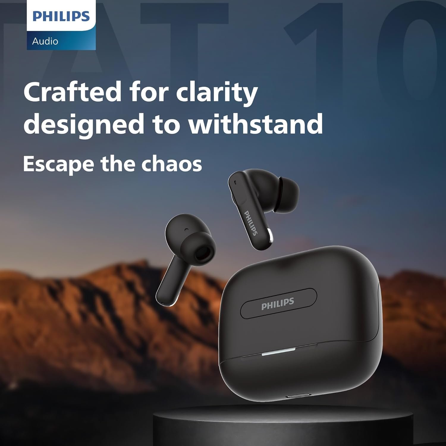 PHILIPS TAT1050BK/94 Truly Wireless Earbuds with ANC, Quad Mic ENC, Up to 50 Hr Playtime, 13mm Neodymium Drivers, Multipoint, IPX5 Water Resistance, Fast Charging, Ultra Low Latency (Deep Black)