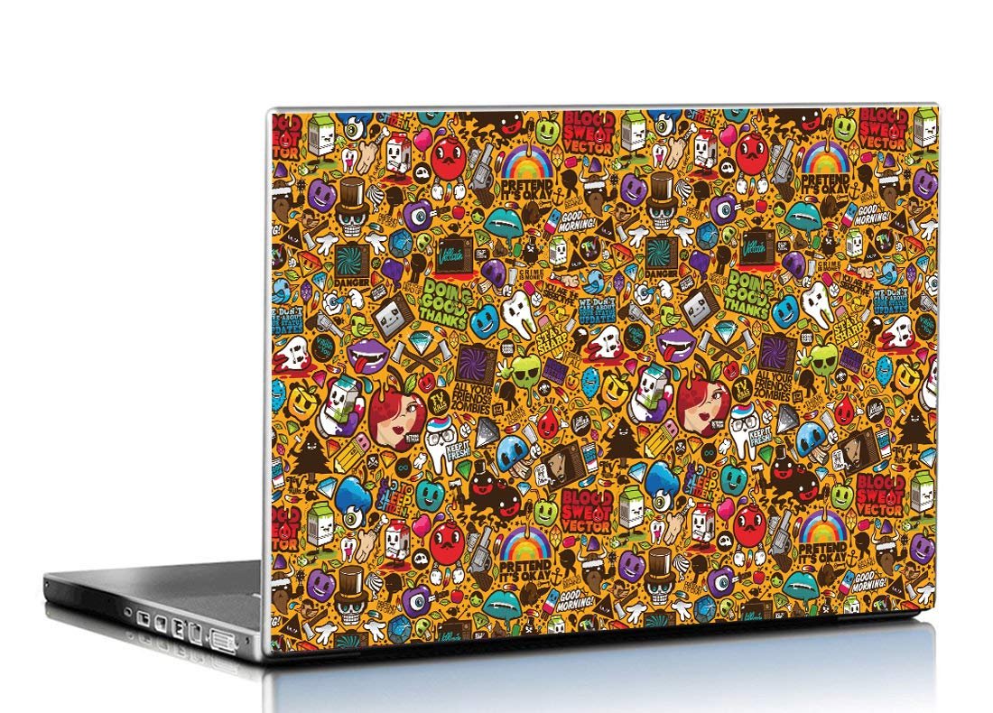 PIXELARTZ Laptop Skins GTA Doodle Art Stickers Collage 15.6 Inches Laptop Skins/Stickers for Dell Lenovo Acer HP (1090)