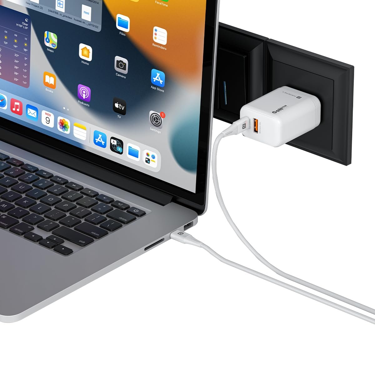 Fast Charge PD Port: 65W Power Delivery 3.0 (with PPS) is powerful enough to fast charge your MacBook Pro 13 within 2 hours. The charger comes with Type C Cable for ultimate convenience.