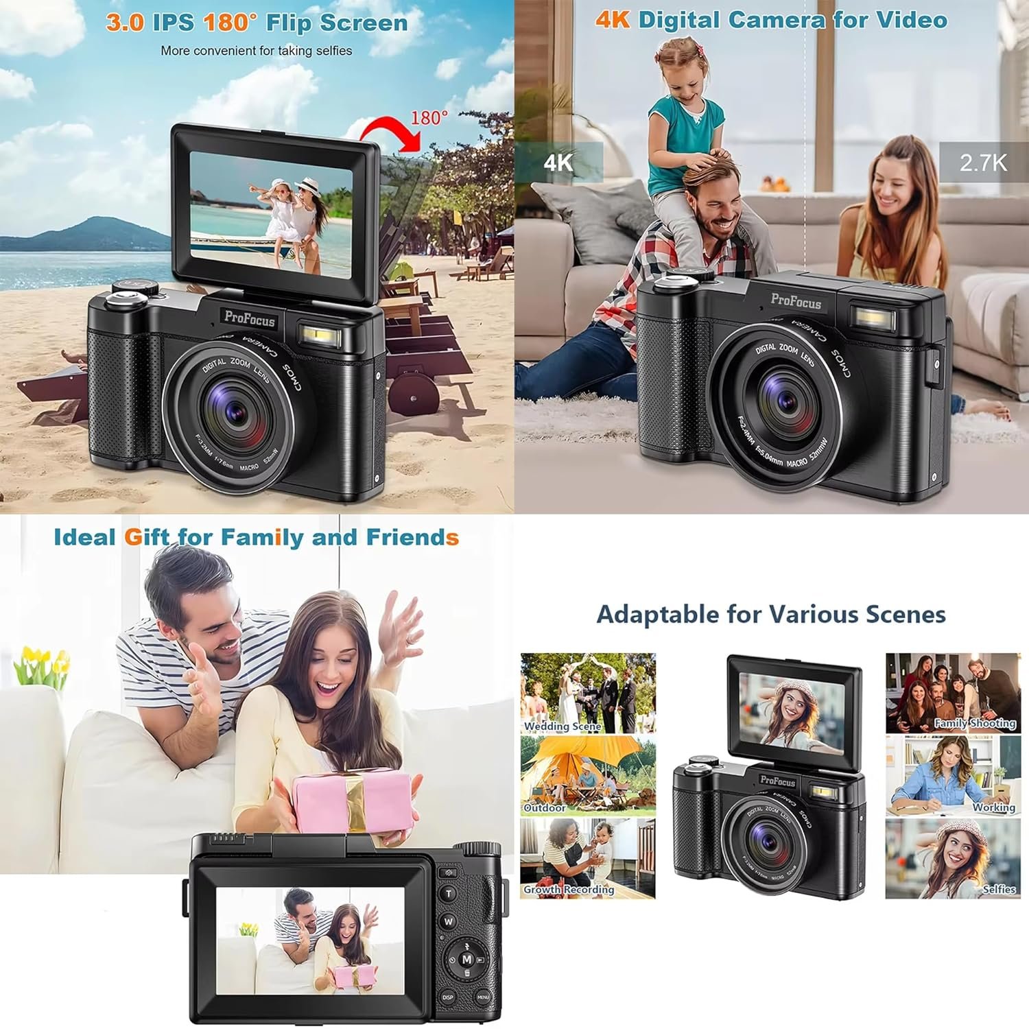 4K Mirrorless Camera with Flip Screen: Capture high-definition videos and photos with this compact mirrorless camera. The flip screen lets you easily frame yourself, making it perfect for vlogging, tutorials, and live streaming.