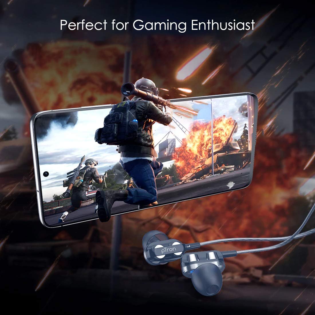 pTron Boom Ultima 4D Dual Driver, in Ear Gaming Wired Headphones with in-Line Mic, Volume Control & Passive Noise Cancelling Boom 3 Earphones – (Dark Blue)