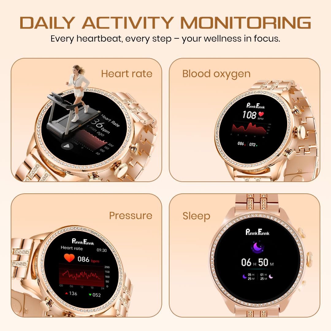 PunnkFunnk GEN 9 Smartwatch for Women with Metal Strap & HD Display, Bluetooth Calling, 100+ Watch Faces, Health Tracker, Sports Modes & IP67 Waterproof(Rose Gold)